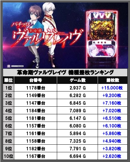 ヴァルヴレイヴ差枚数ランキング👑