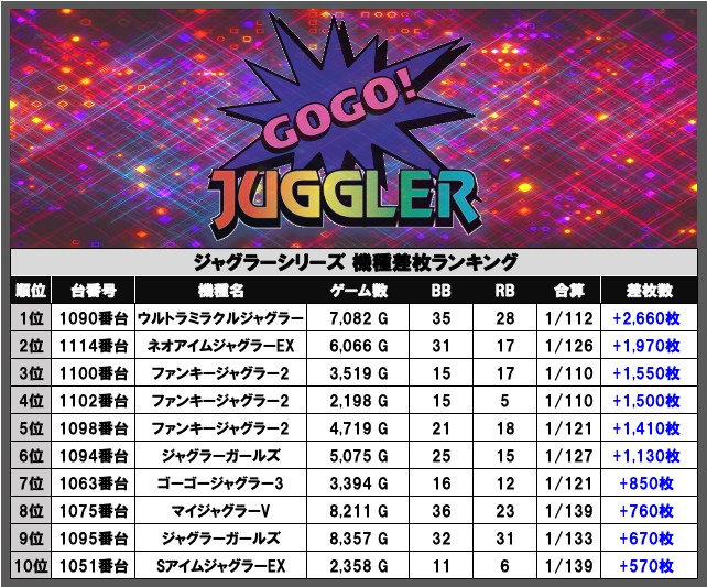 ジャグラーシリーズ差枚数ランキング👑
