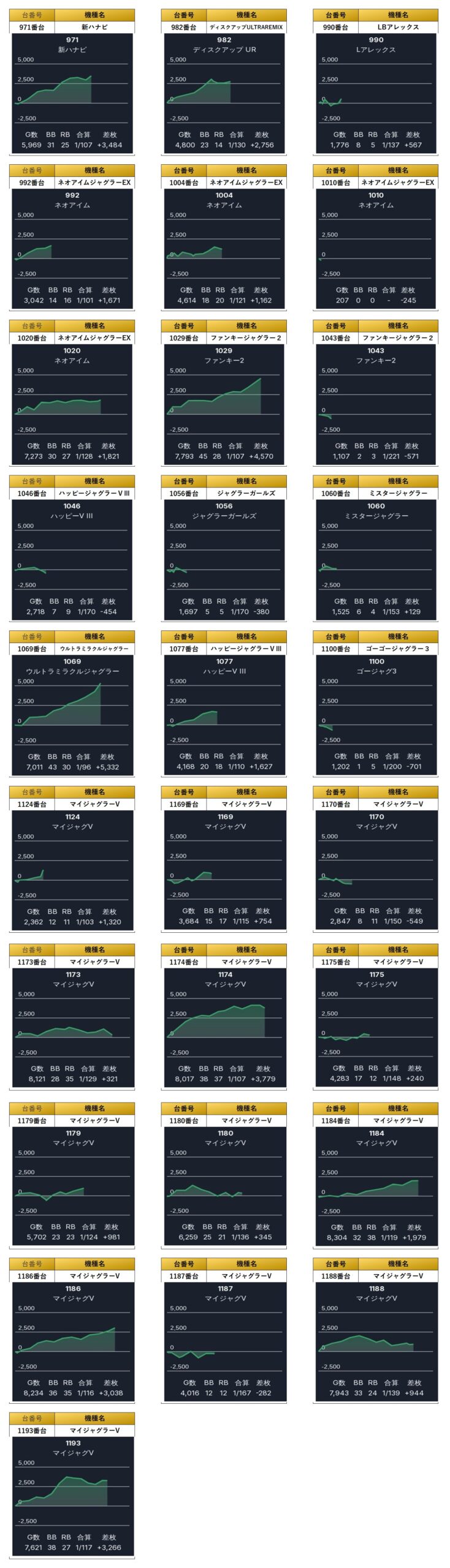 ・1台あたりの平均差枚数+1,101枚(平均出率107.4%)