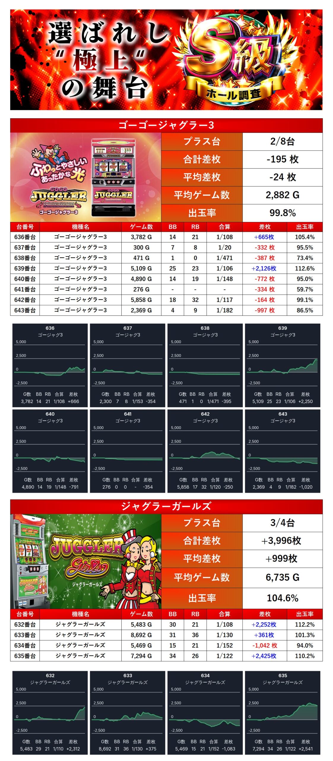初開催のS級ホール調査はメイン機種を軸に安定した出率で二つ星