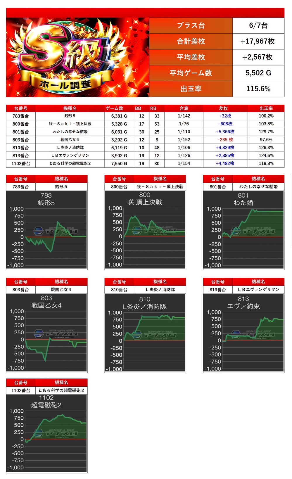 ・1台あたりの平均差枚数+1,356枚(平均出率106.8%)