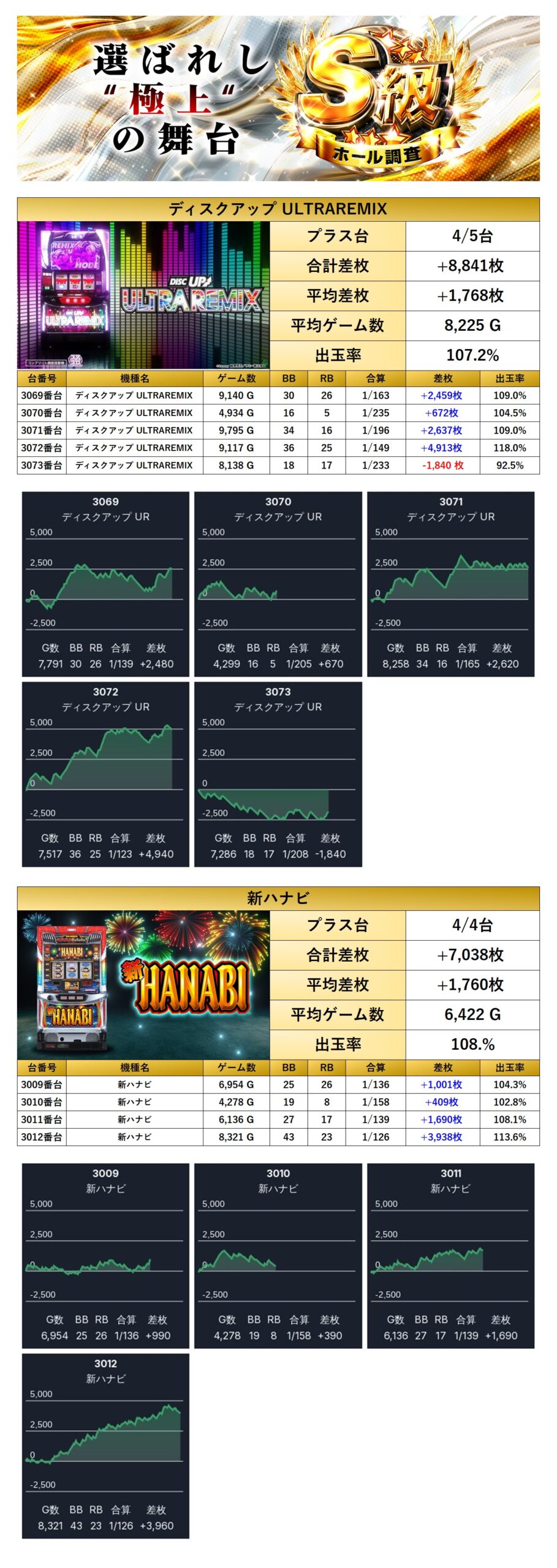 2回目となるのS級ホール調査-極-は圧巻の仕掛け量と総差枚9.4万枚OVERで最高評価の三ツ星獲得!