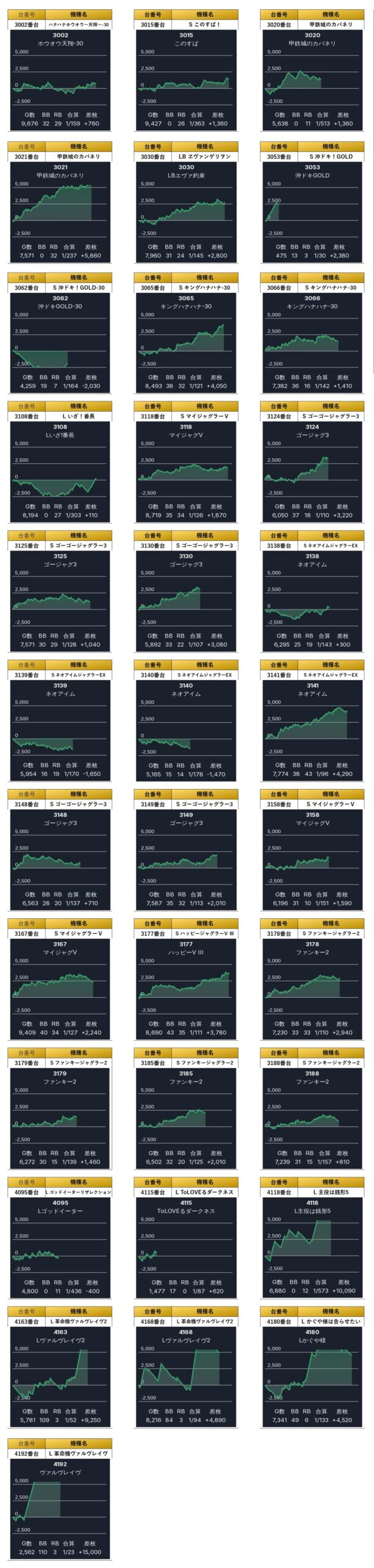 平均差枚は+3,467枚/平均出率115.0%と圧倒的な結果を叩き出し、今回の仕掛けの中心的存在となった。