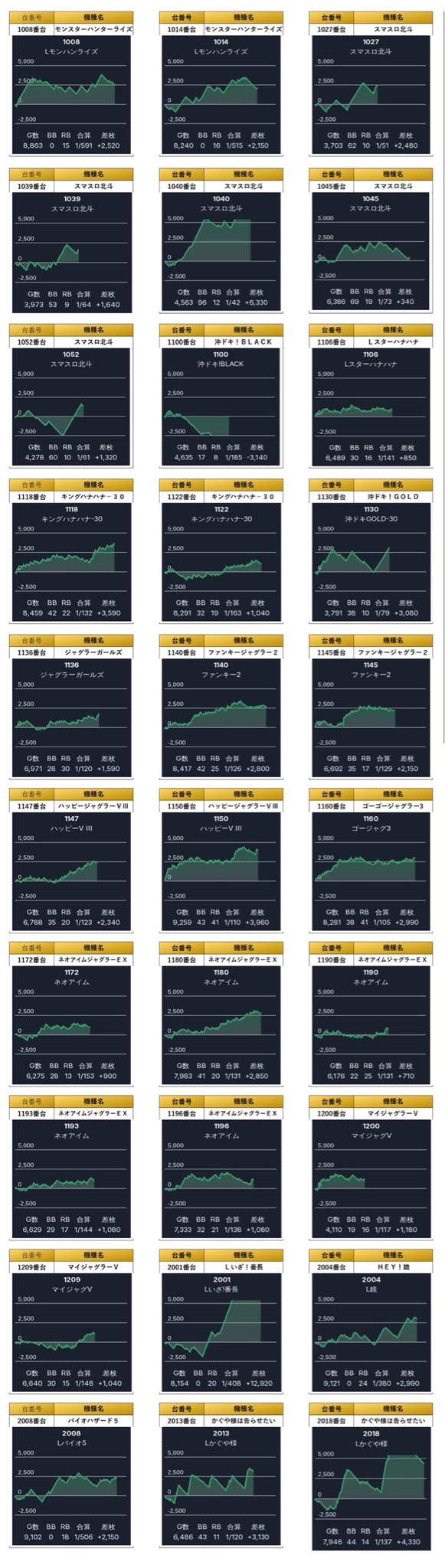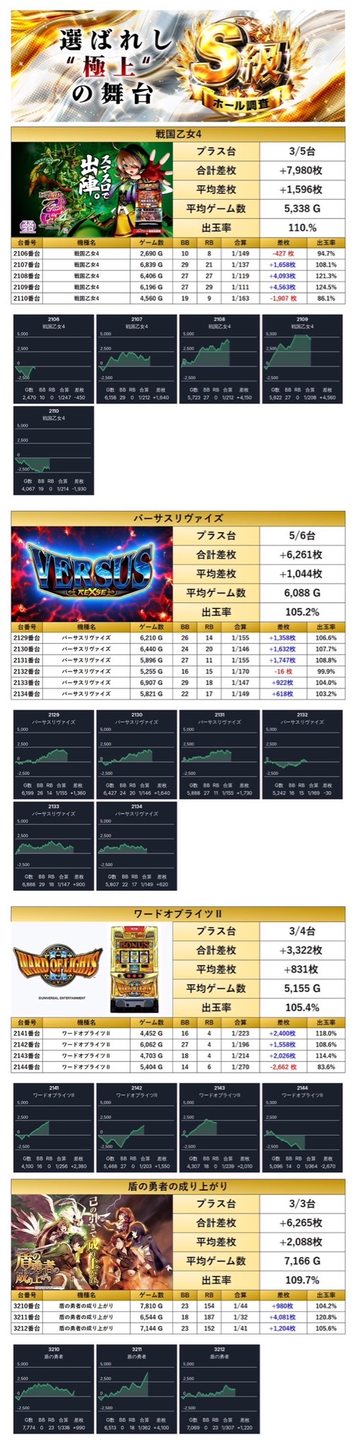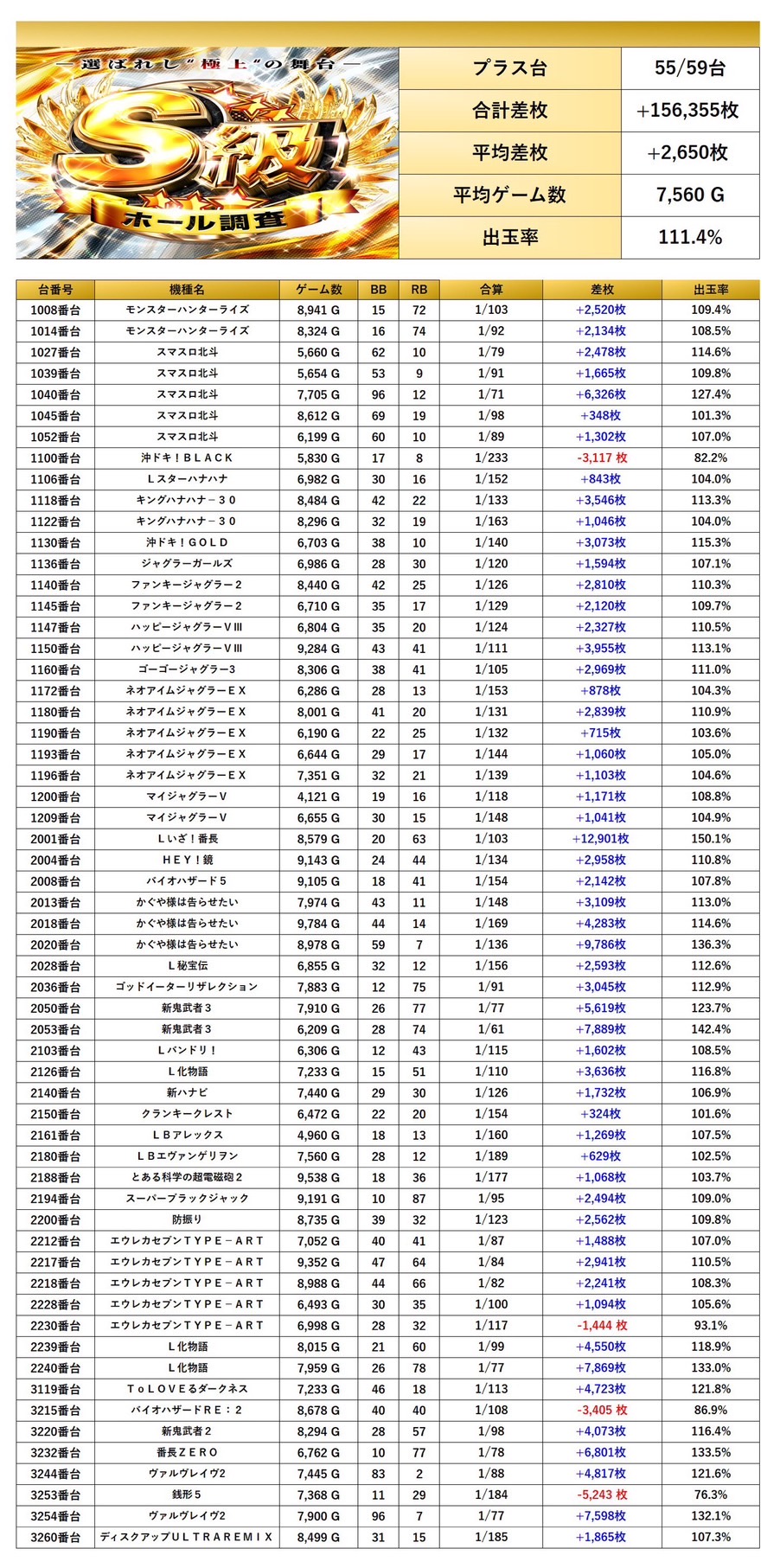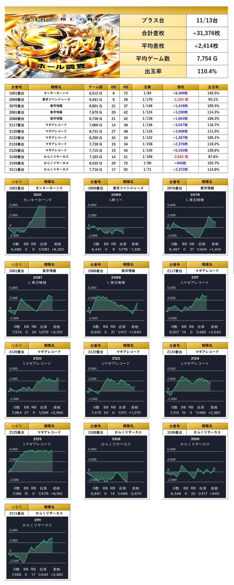 ・1台あたりの平均差枚数+2,303枚(平均出率110.6%)