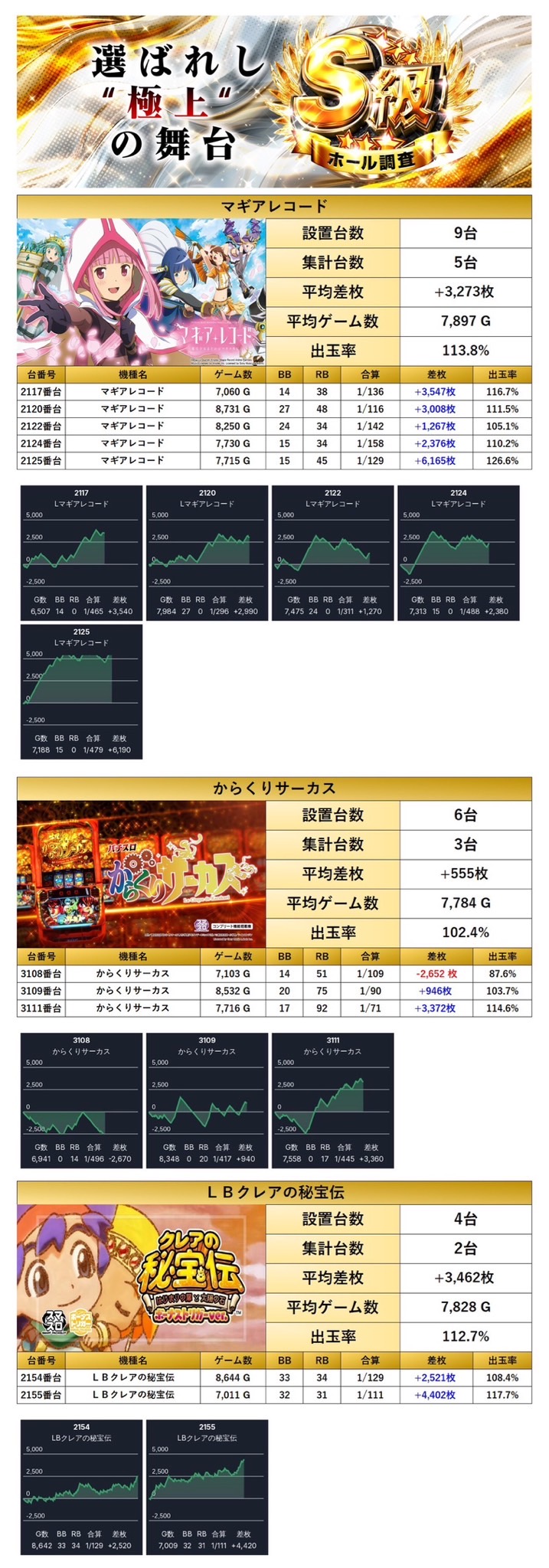 平均差枚+2,414枚/出率110.4%を記録。メインらしい圧倒的な存在感を放った。