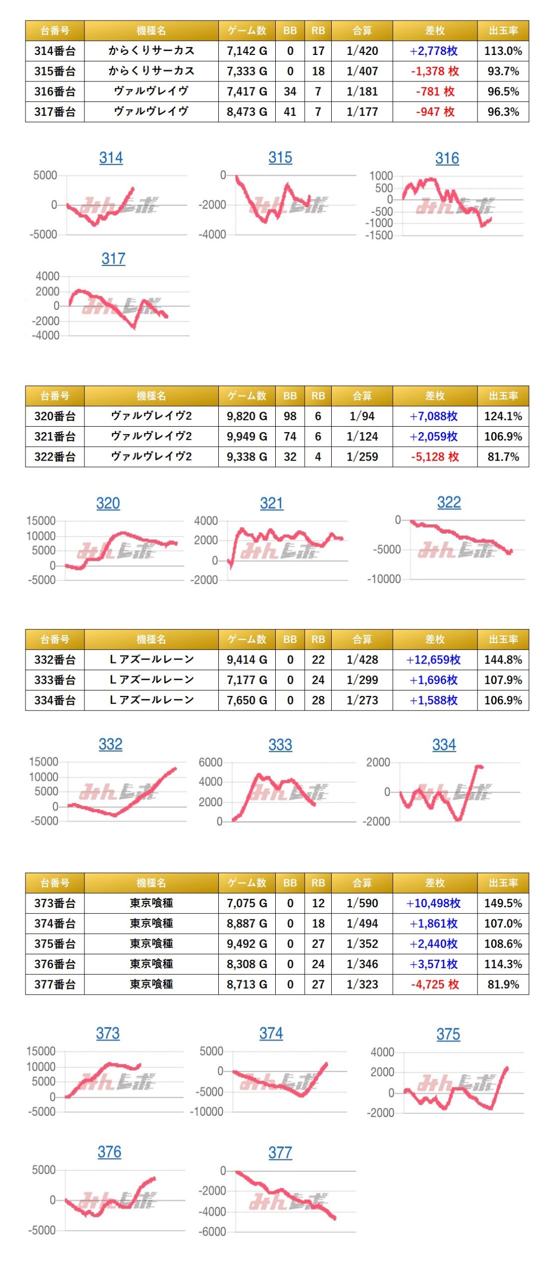 ・集計機種計53台総差枚数:+75,911枚