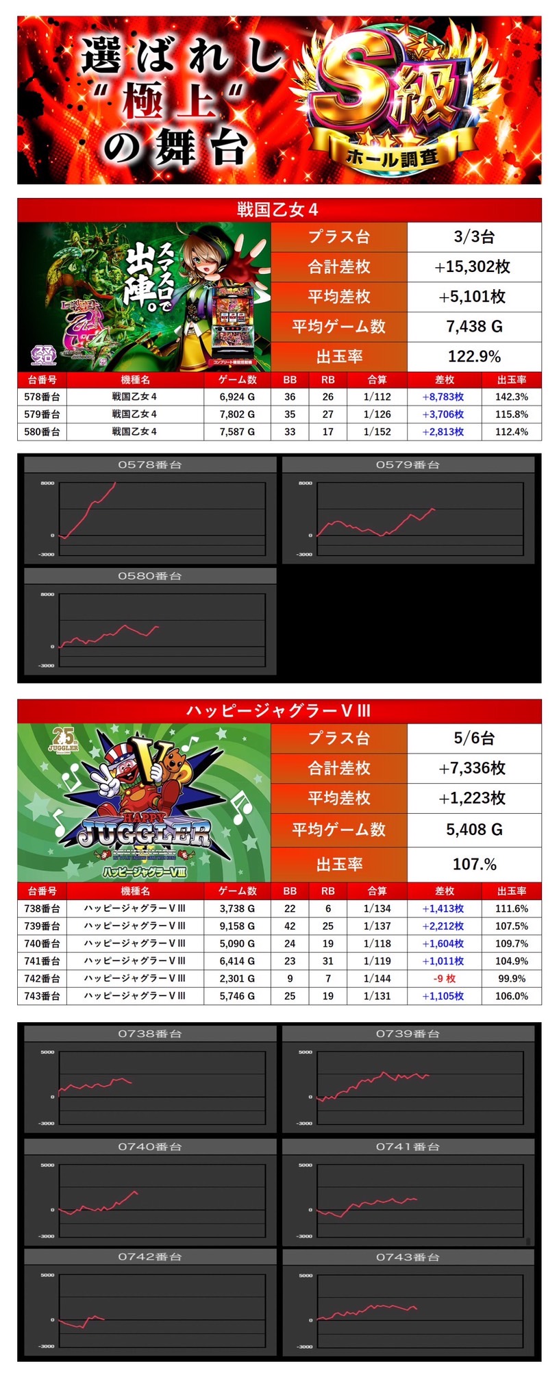 「戦国乙女4」「ハッピージャグラー」の2機種9台をpick up。