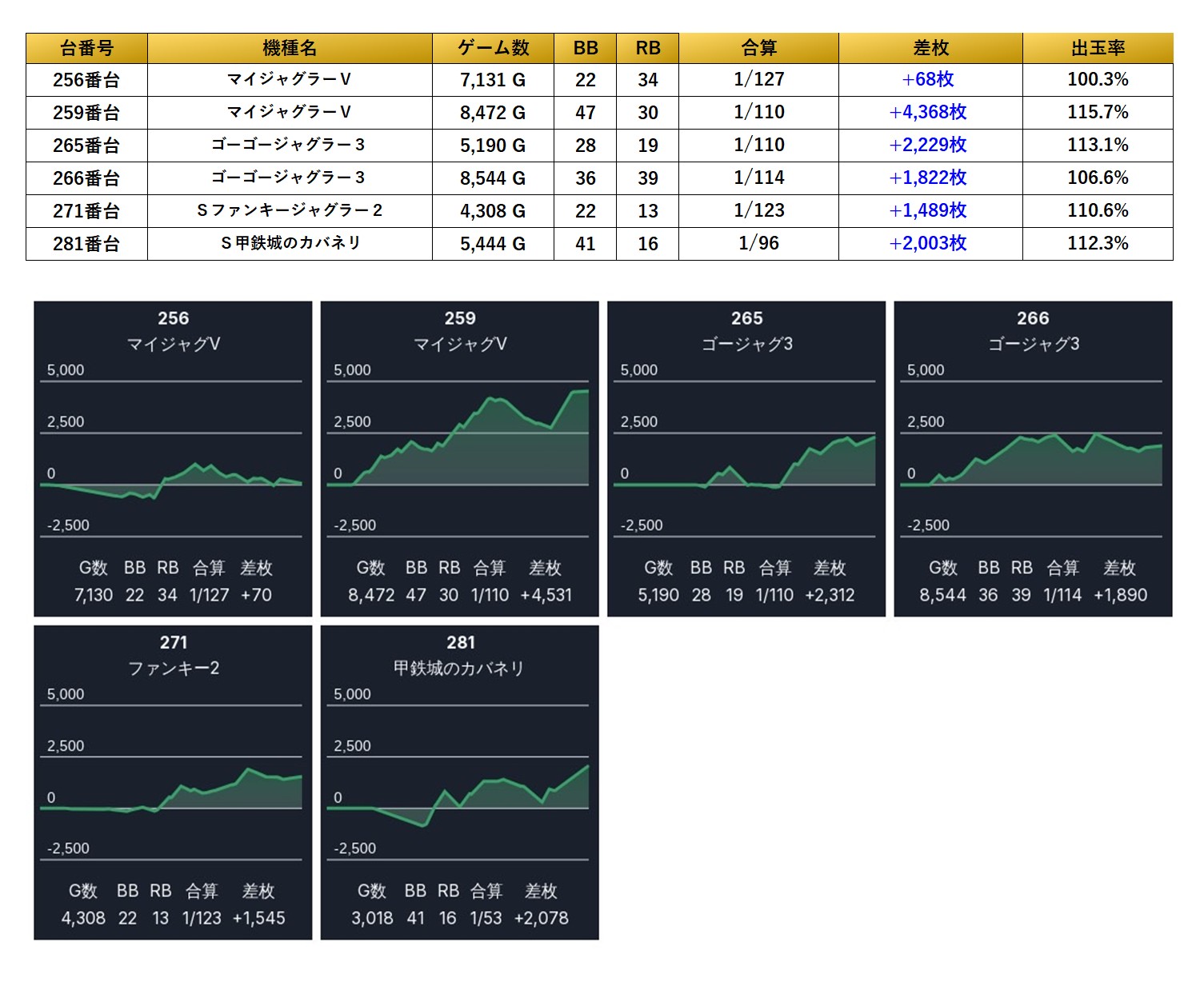 ・1台あたりの平均差枚数+3,133枚(平均出率116.9%)