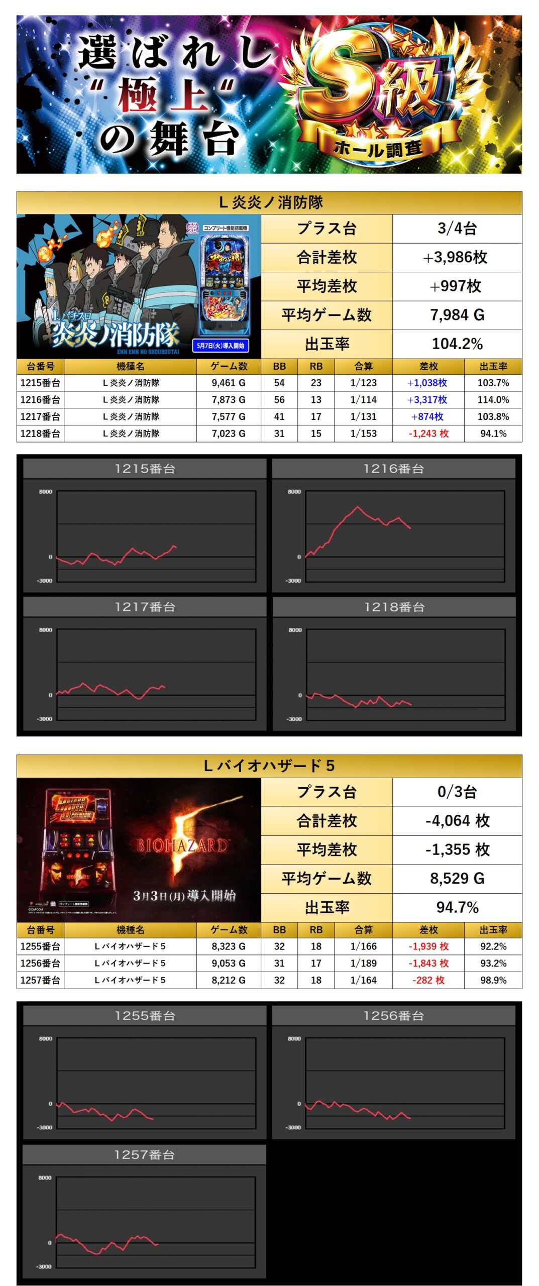 「L炎炎ノ消防隊」「Lバイオハザード5」の2機種7台ををpick upする。