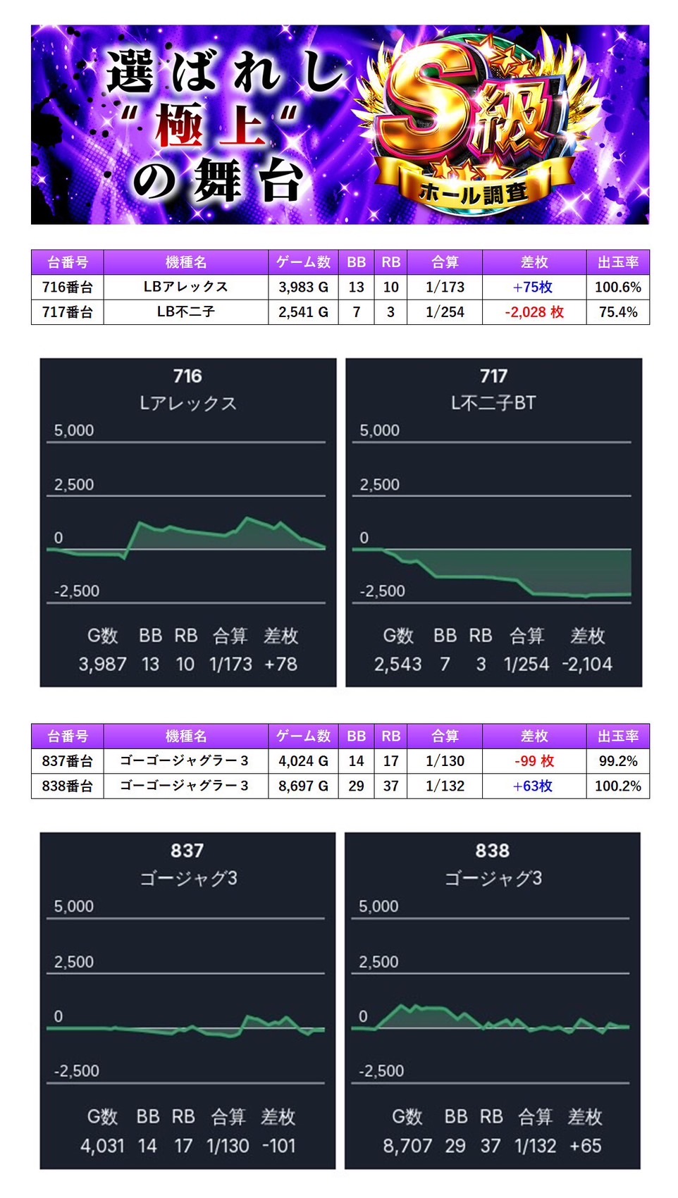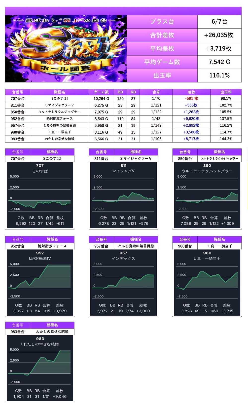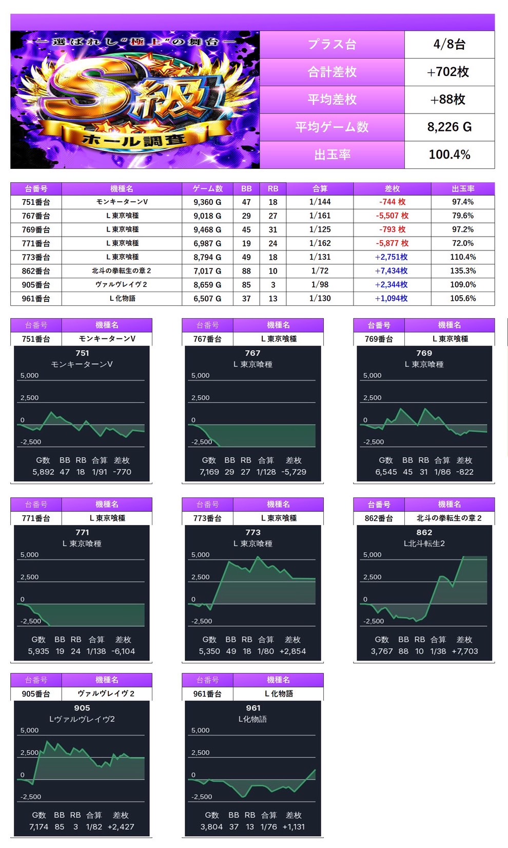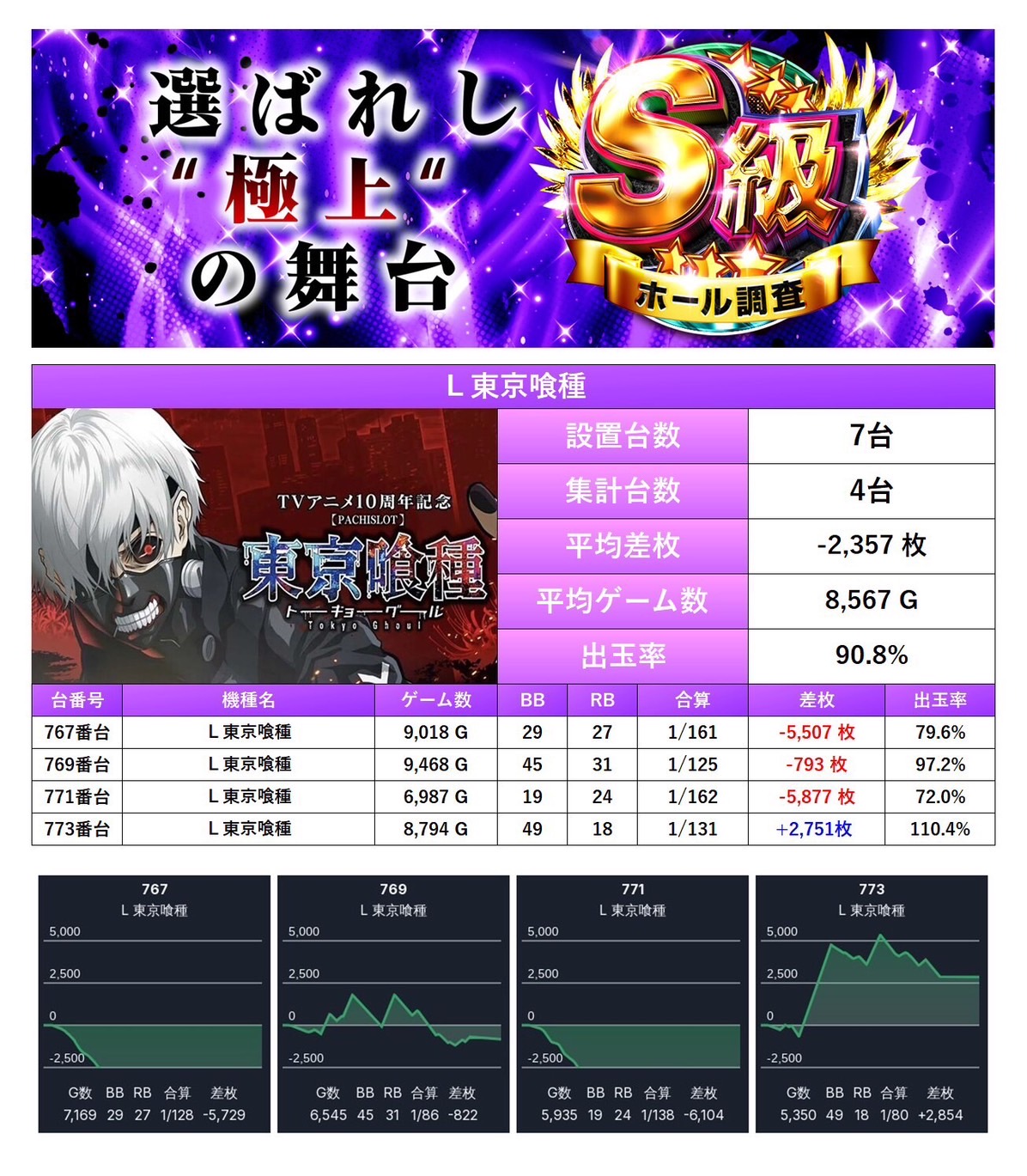 7回目の開催となるS級ホール調査-紫-は多彩な機種と安定した出率で二つ星評価