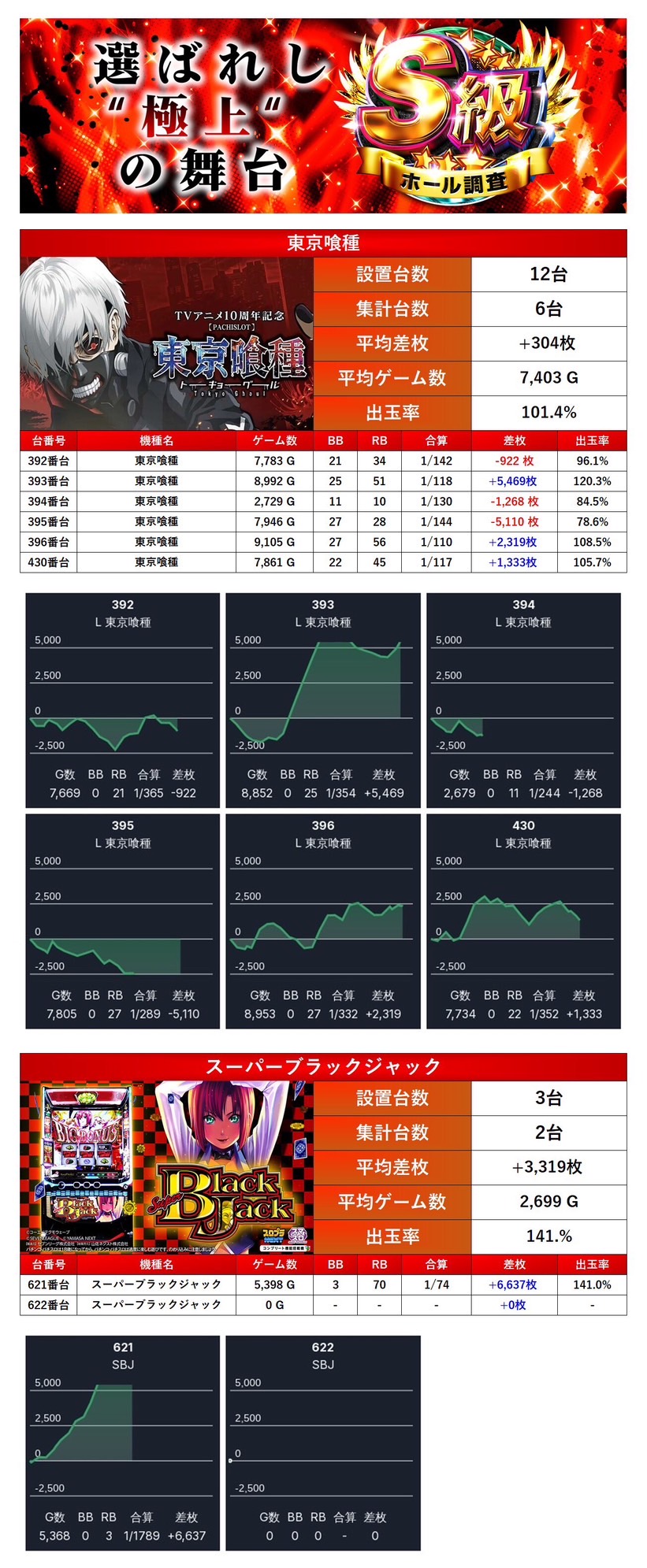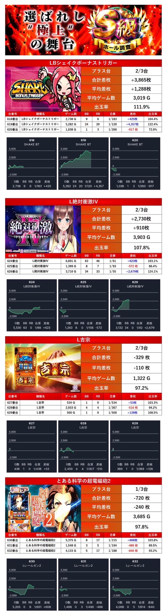 33回目のS級ホール調査-赤-はメイン機種を軸に安定した出率で三つ星獲得