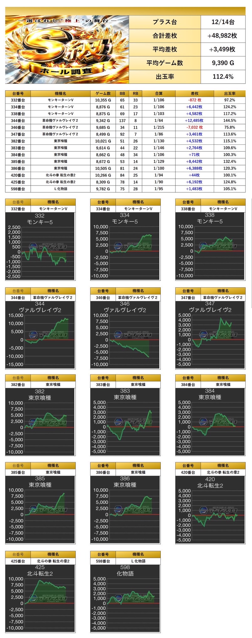 平均差枚+3,499枚/出率112.4%を記録。メインらしい安定した出率を誇った。