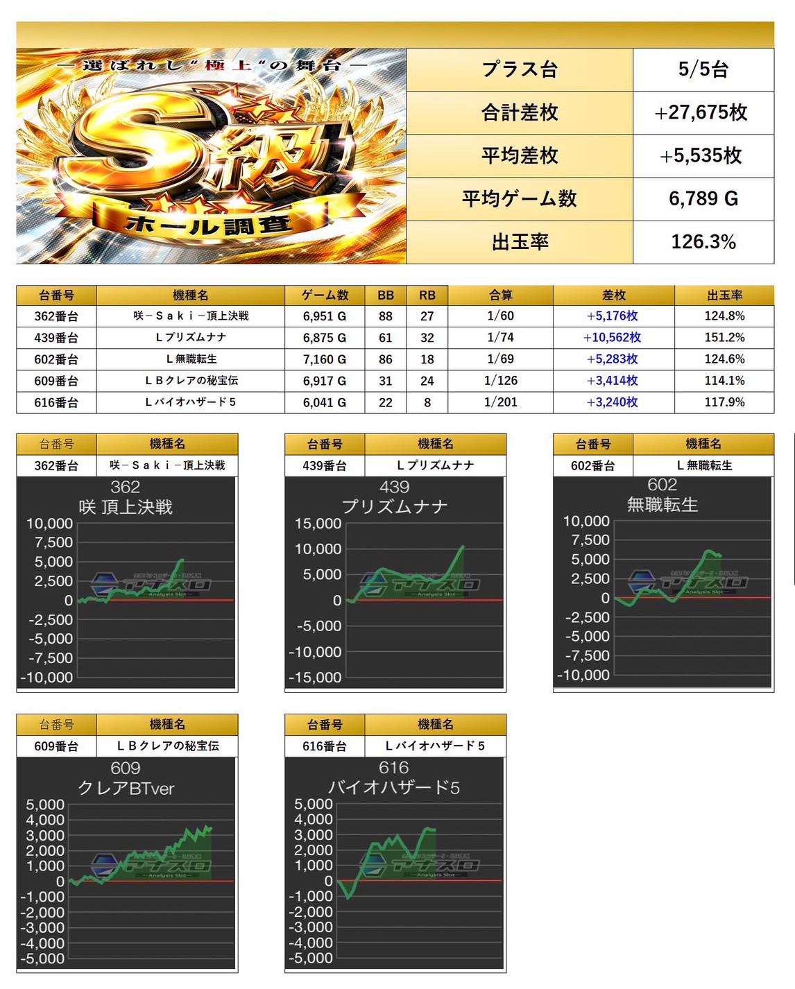 合計5台がピックアップされ、平均差枚+5,535枚/出率126.3%をマーク。各所から存在感を放っていた。