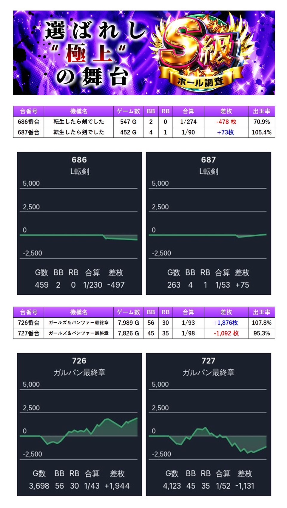 5回目のとなるS級ホール調査‐紫‐は意外性のある仕掛け、安定した出率で二つ星評価