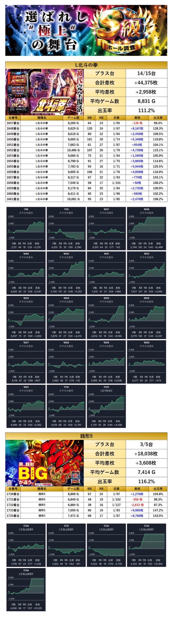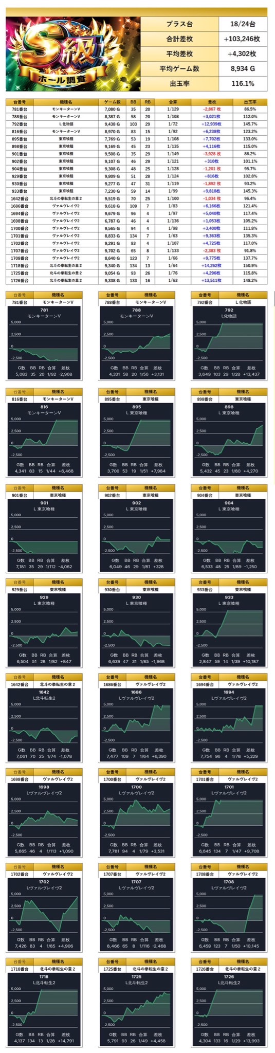 平均差枚は+4,302枚で平均出率が116.1%と114%を超える圧巻出率で魅了した。