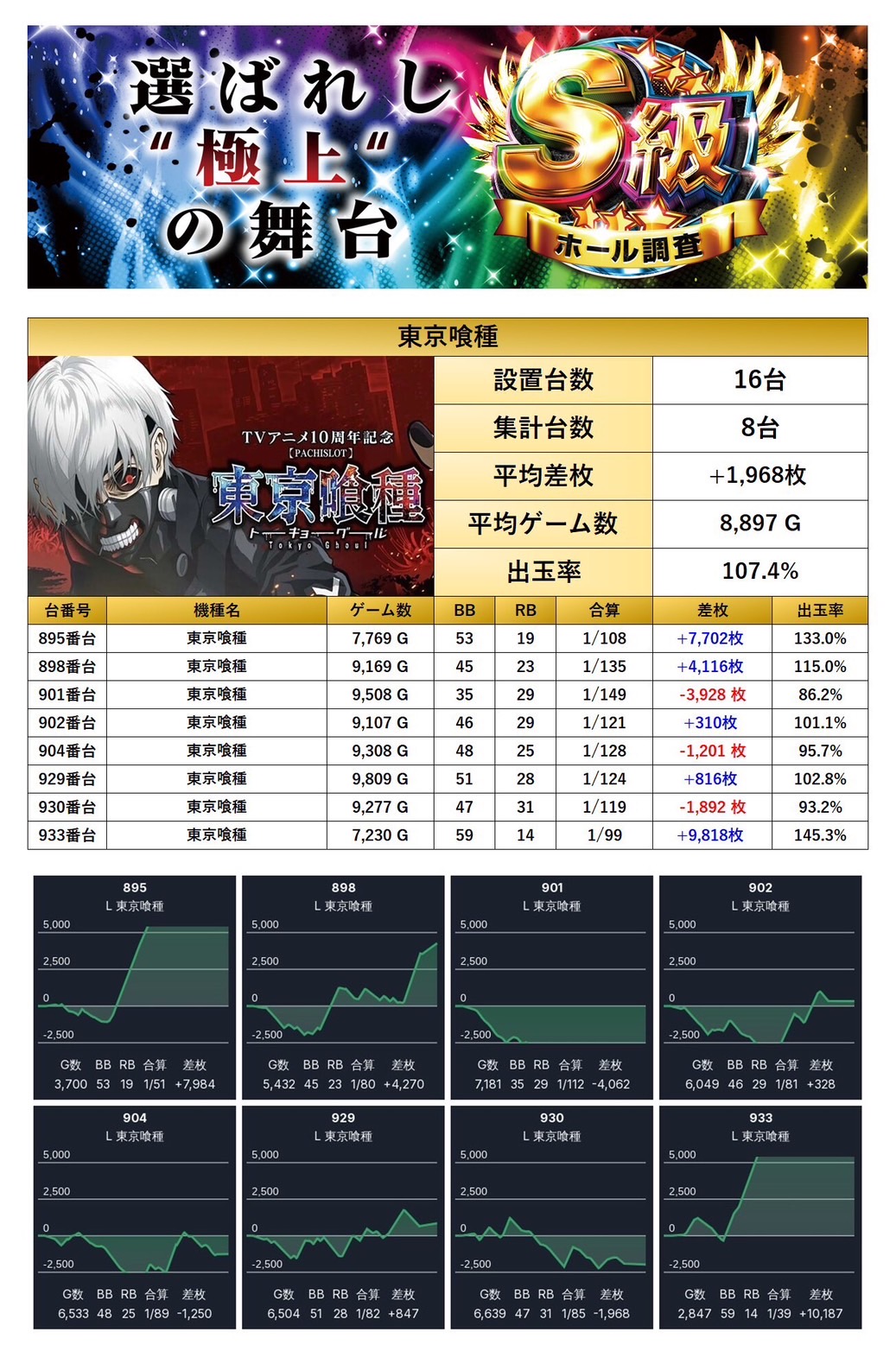 「東京喰種」「化物語」「ヴヴヴ2」「北斗の拳転生2」「モンキー」から優秀台を24台pick upする。
