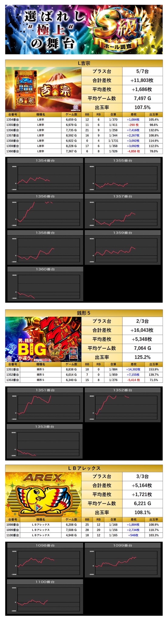 「L吉宗」「銭形5」「LBアレックス」の3機種をpick upする。