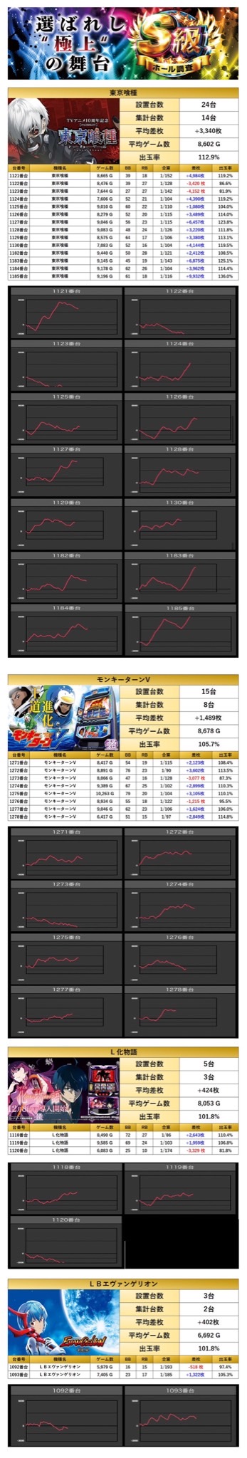 優秀台でも紹介した「東京喰種」「モンキーターン」「化物語」さらに「LBエヴァンゲリオン」の4機種をpick upする。