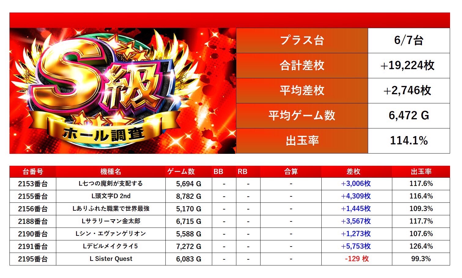初開催!S級ホール調査-赤-は多彩な機種が安定した出率で二つ星評価
