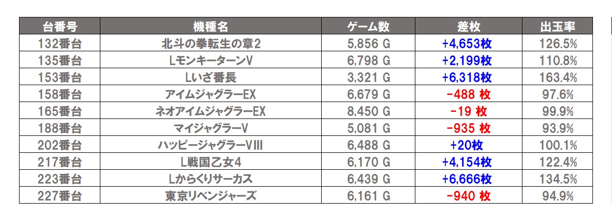 ・集計機種計20台総差枚数:+40,794枚