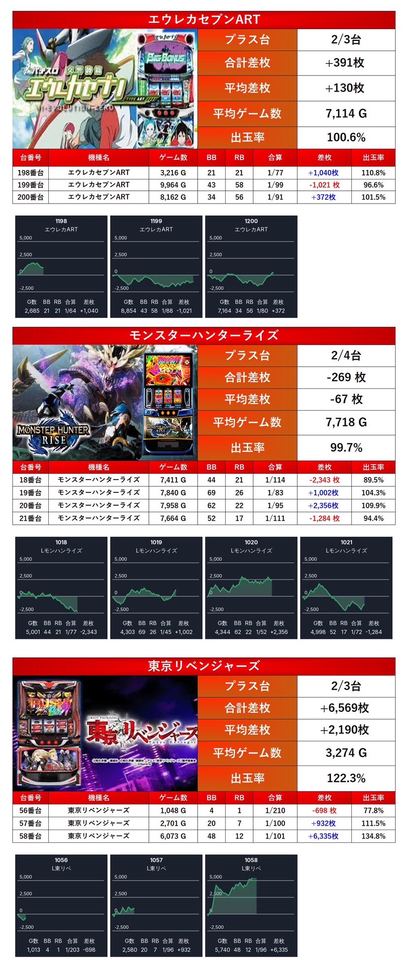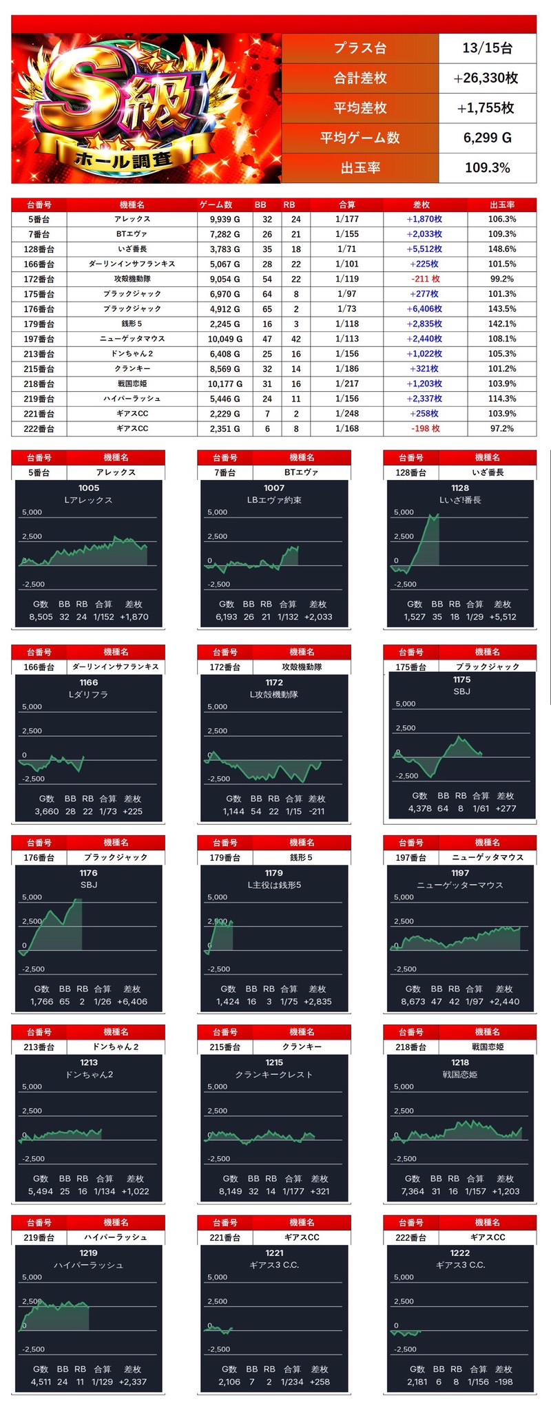 ・1台あたりの平均差枚数+2,009枚(平均出率109.8%)