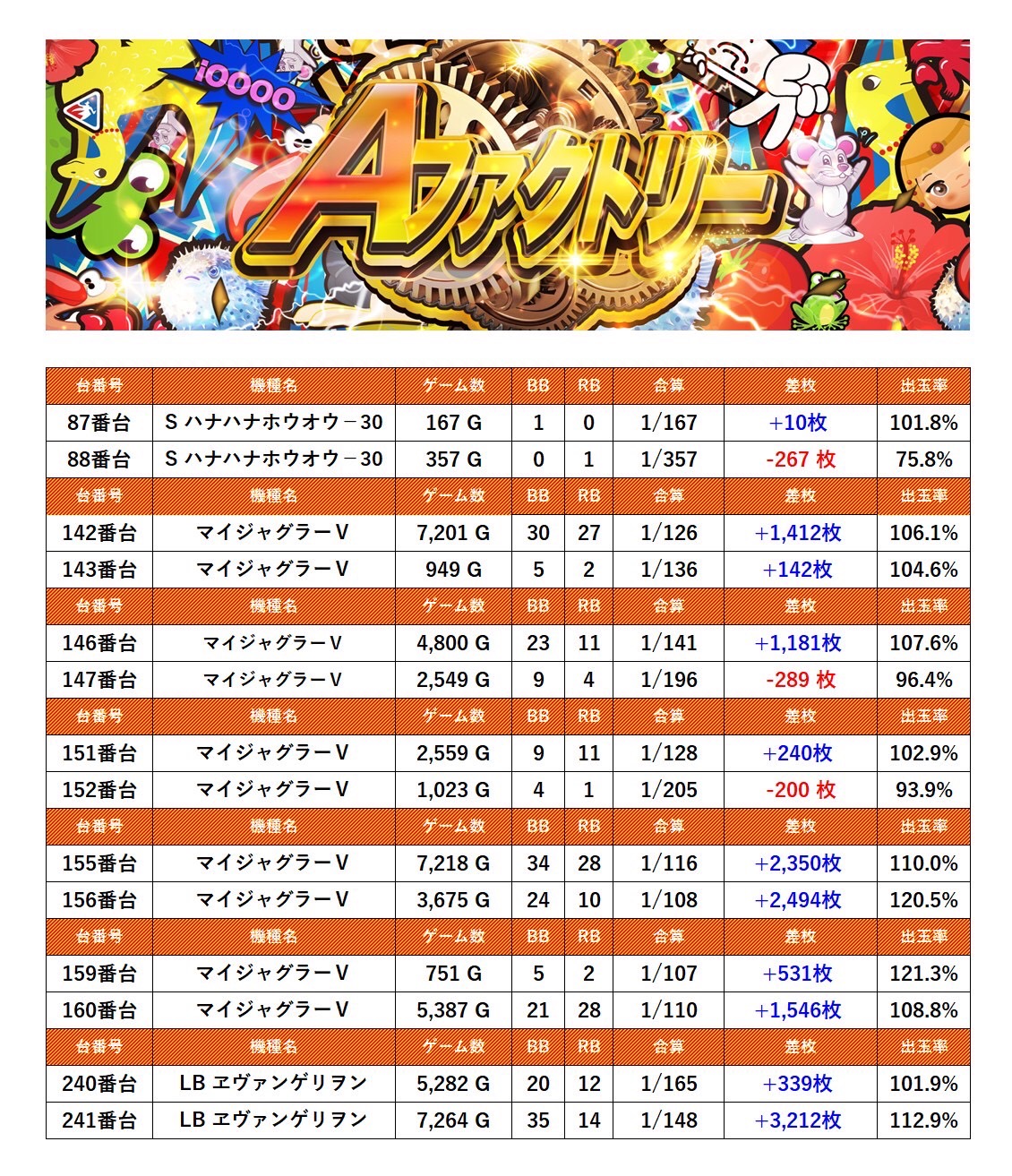 ・集計機種計14台総差枚数:+12,701枚
