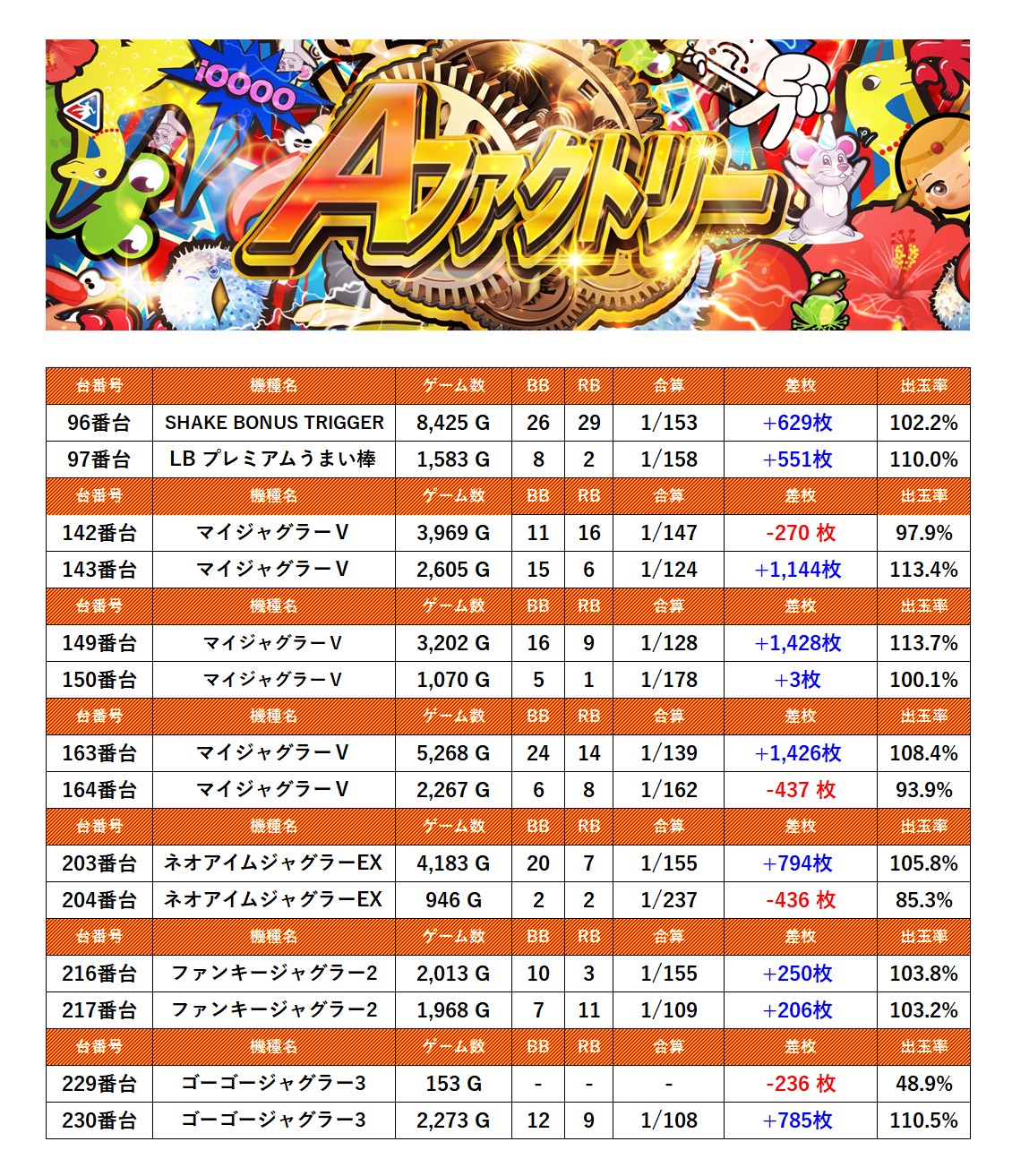 ・集計機種計14台総差枚数:+5,837枚