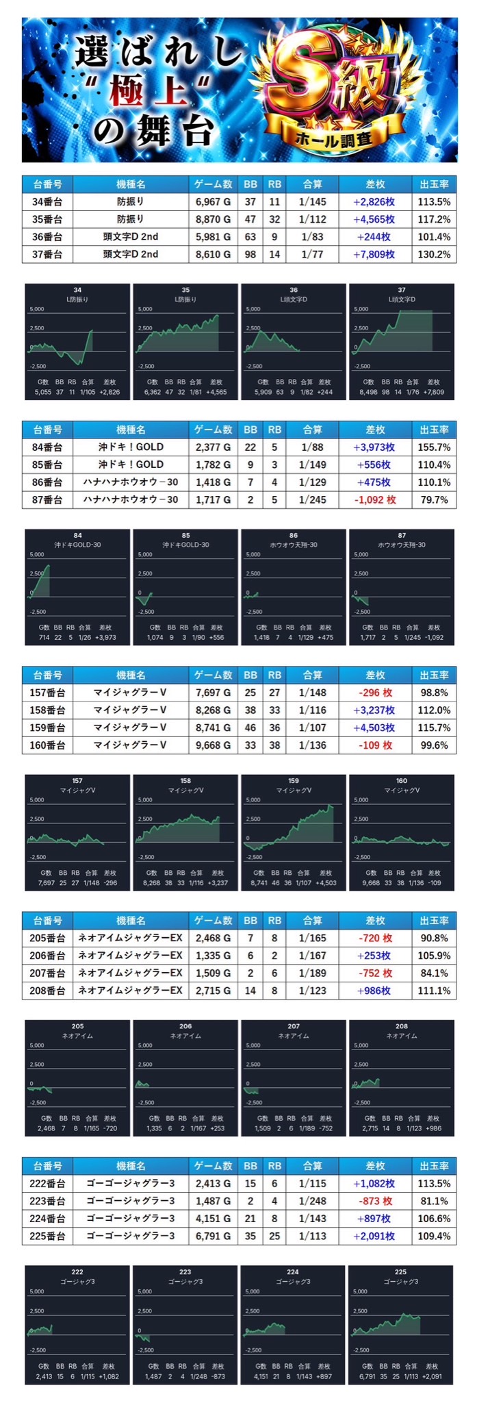 4回目となるS級ホール調査-青-は出率十分!多彩な並び仕掛けで盛り上がり三つ星獲得!