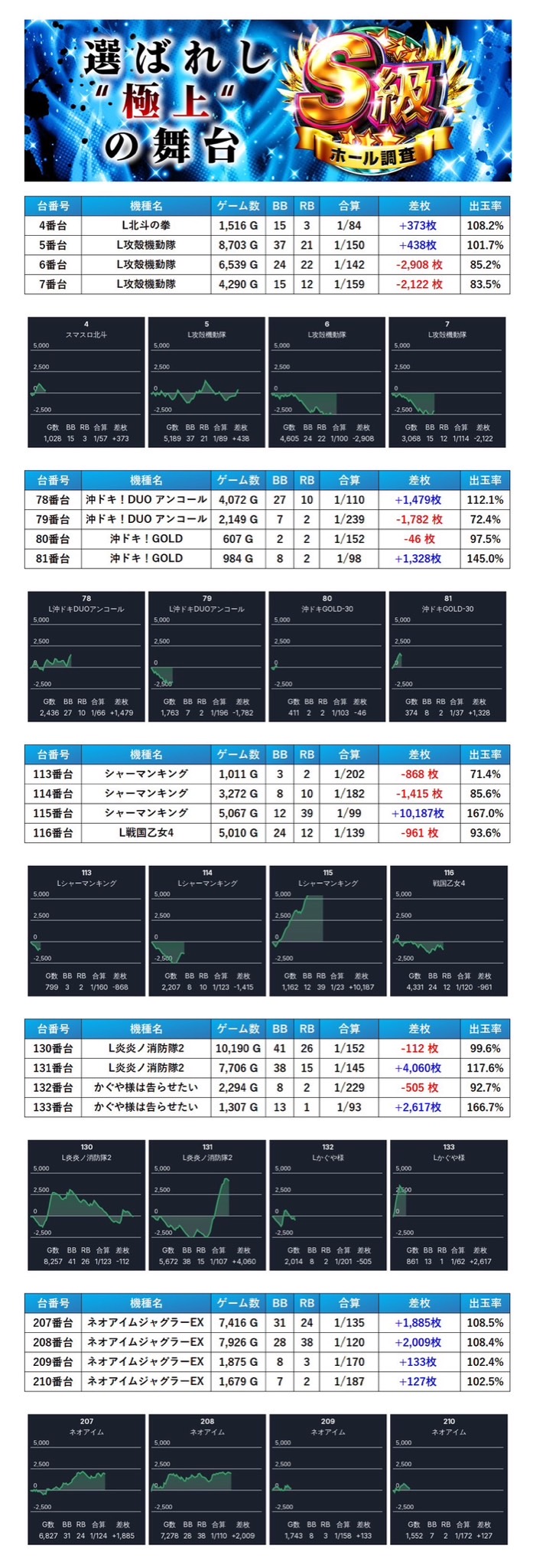 ・1台あたりの平均差枚数+1,503枚(平均出率109.3%)