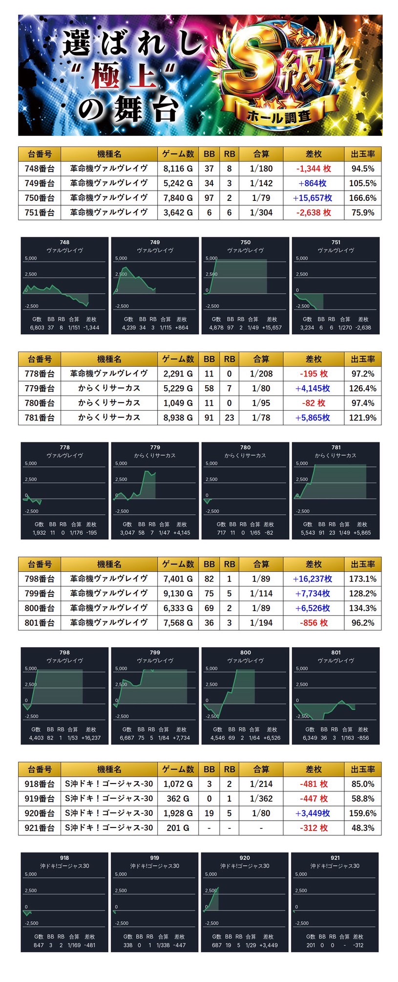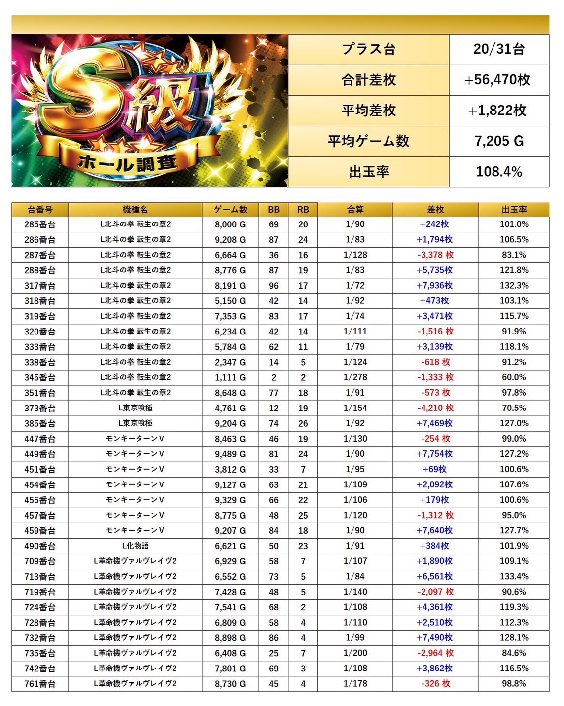 ・1台あたりの平均差枚数+1,510枚(平均出率108.5%)