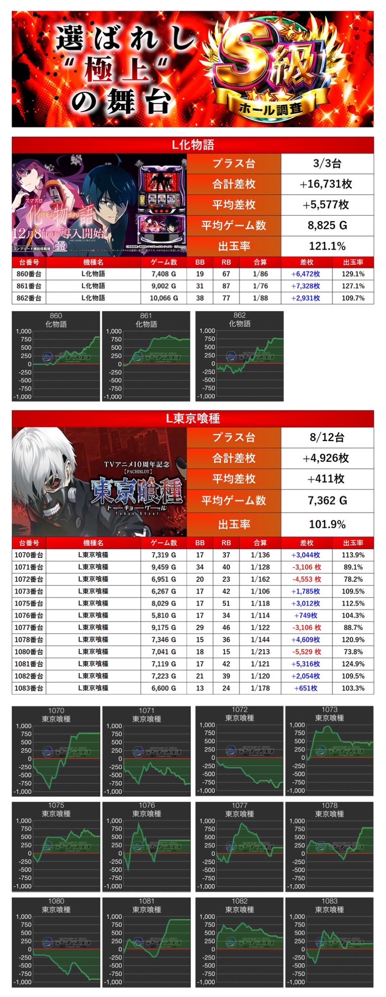 「化物語」「東京喰種」の2機種17台がpick upされた。