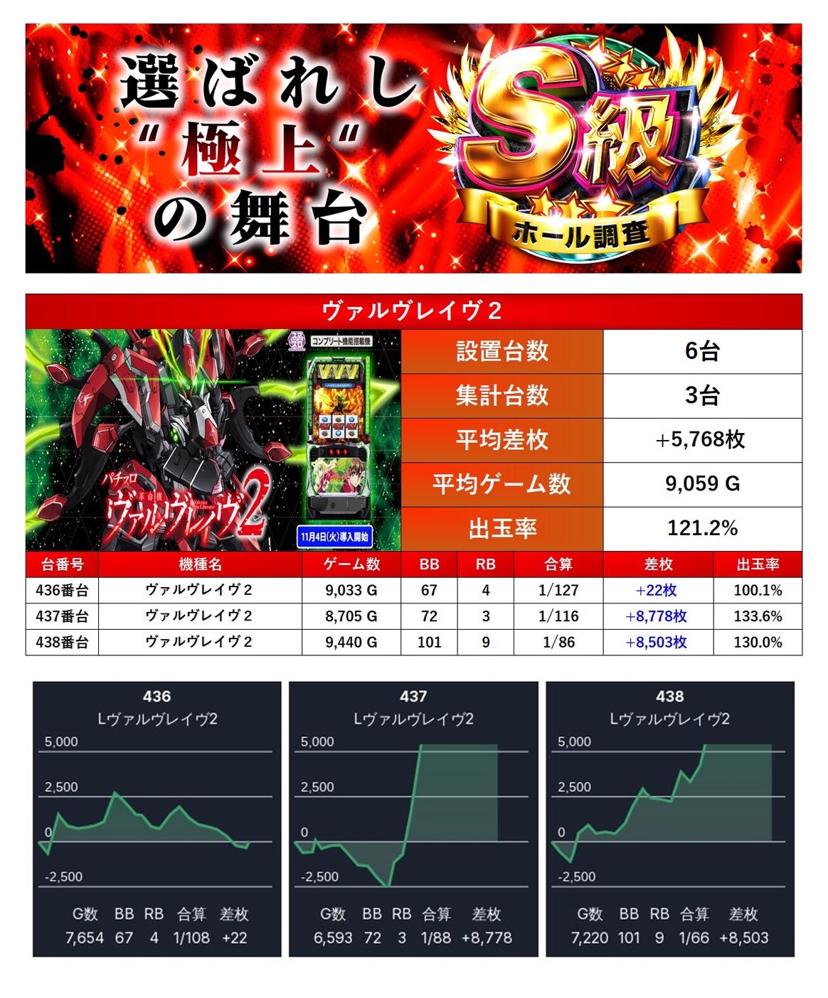 平均差枚は+5,768枚、平均出率は121.2% とメリハリのある仕掛けでホールの出率を押し上げる要因となっていた。