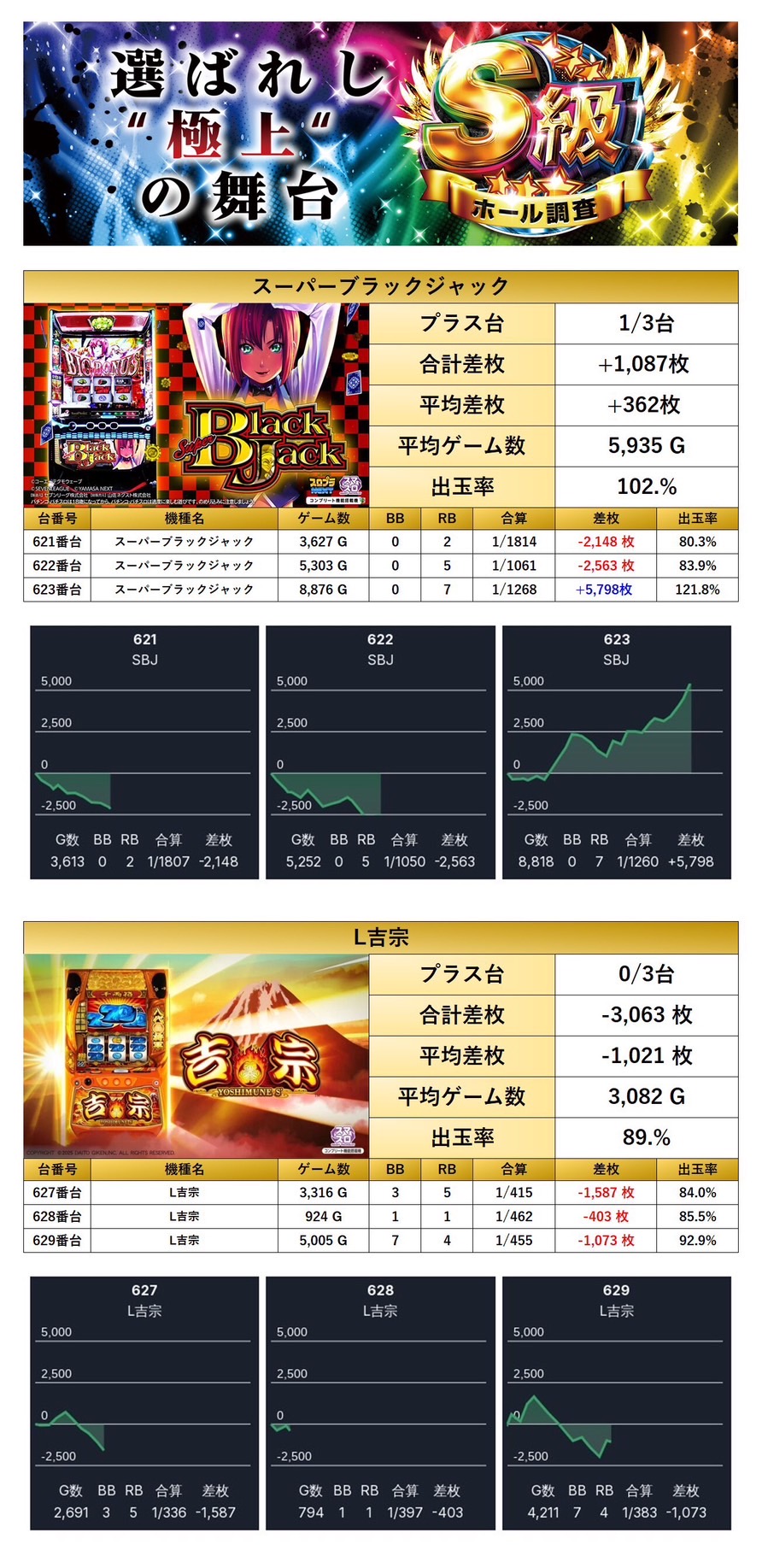 「スーパーブラックジャック」「L吉宗」の2機種6台をpick up。