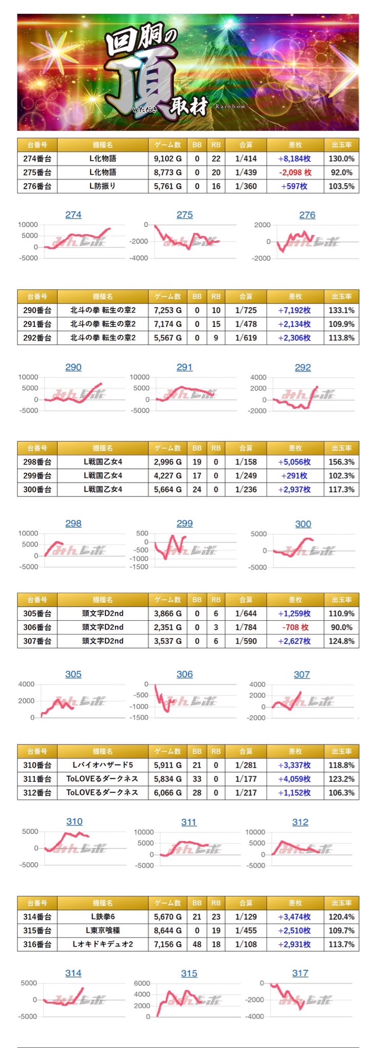 単独開催!回胴の頂取材-虹-は人気機種の並びが優秀な結果!