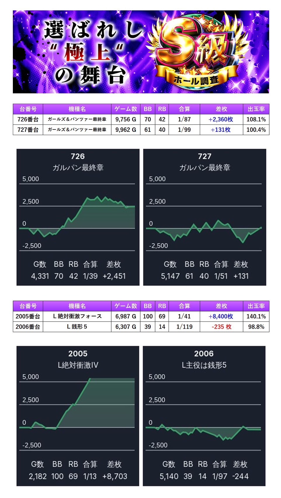 6回目のとなるS級ホール調査‐紫‐は仕掛け量・出率が足りず一つ星評価