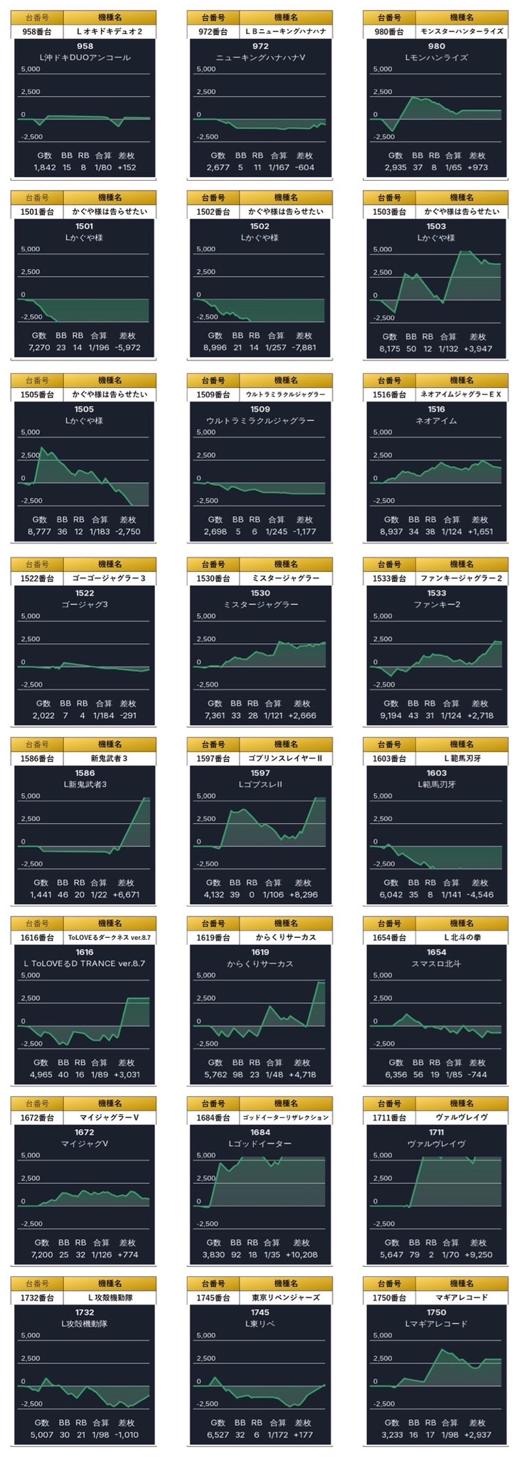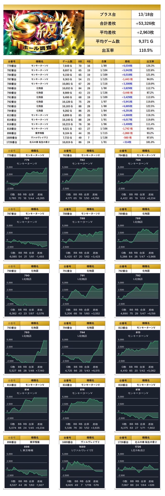 平均差枚は+3,840枚で平均出率が113.9%とこちらも素晴らしい出率だった。