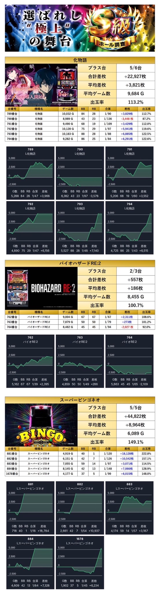 「L化物語」「バイオハザードRE:2」「スーパービンゴネオ」の3機種14台をpick upする。