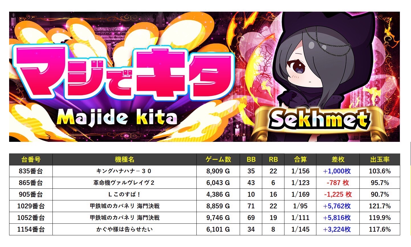 今回は頭文字がKから始まる機種が9機種あったが5機種から好調な台が見えていた。
