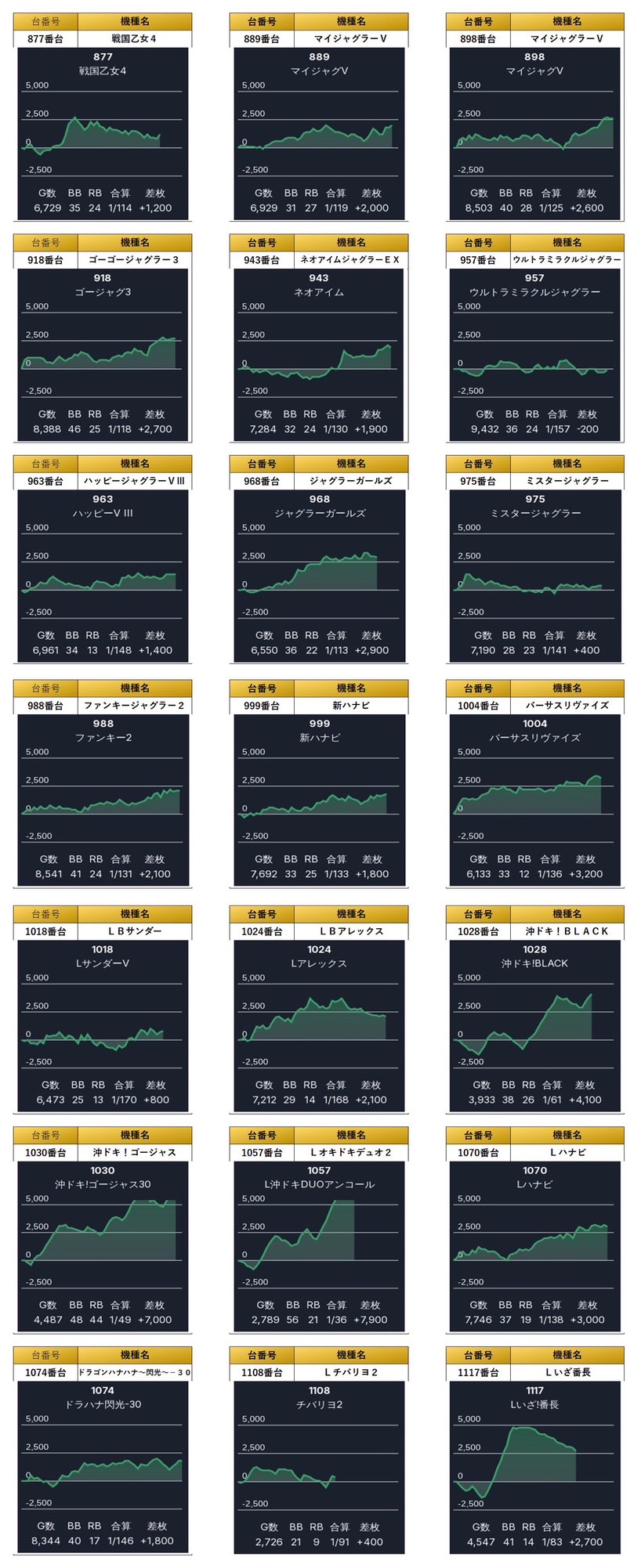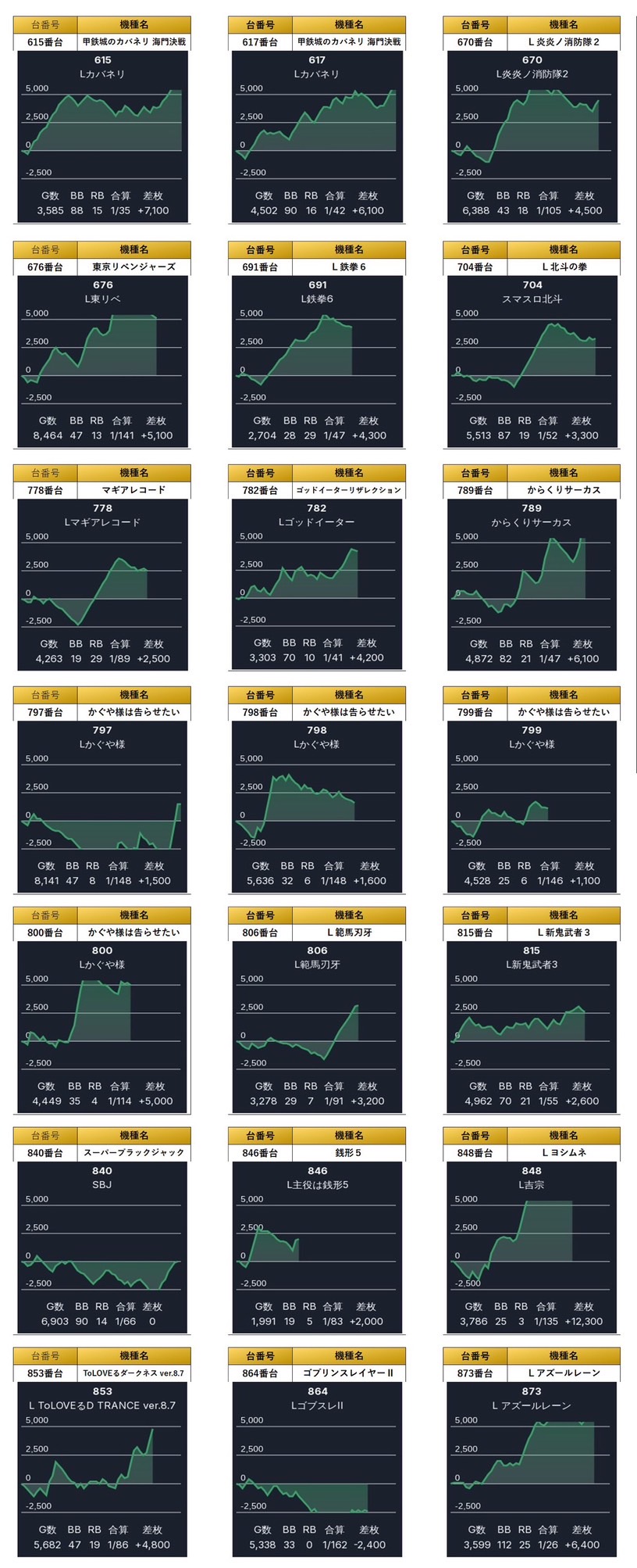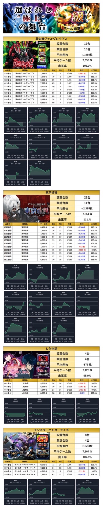 法則に捉われない台では2台がpick upされ、平均差枚+2,753枚、出率115.4%としっかりとした結果を記録。ピンポイントでも狙える環境が用意されていた。