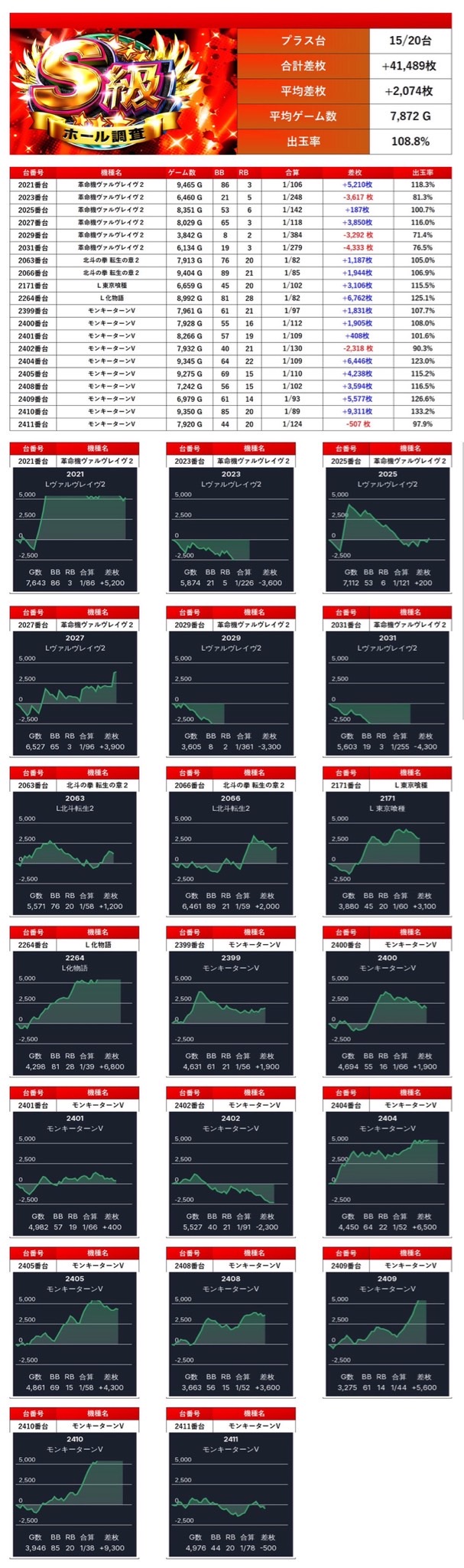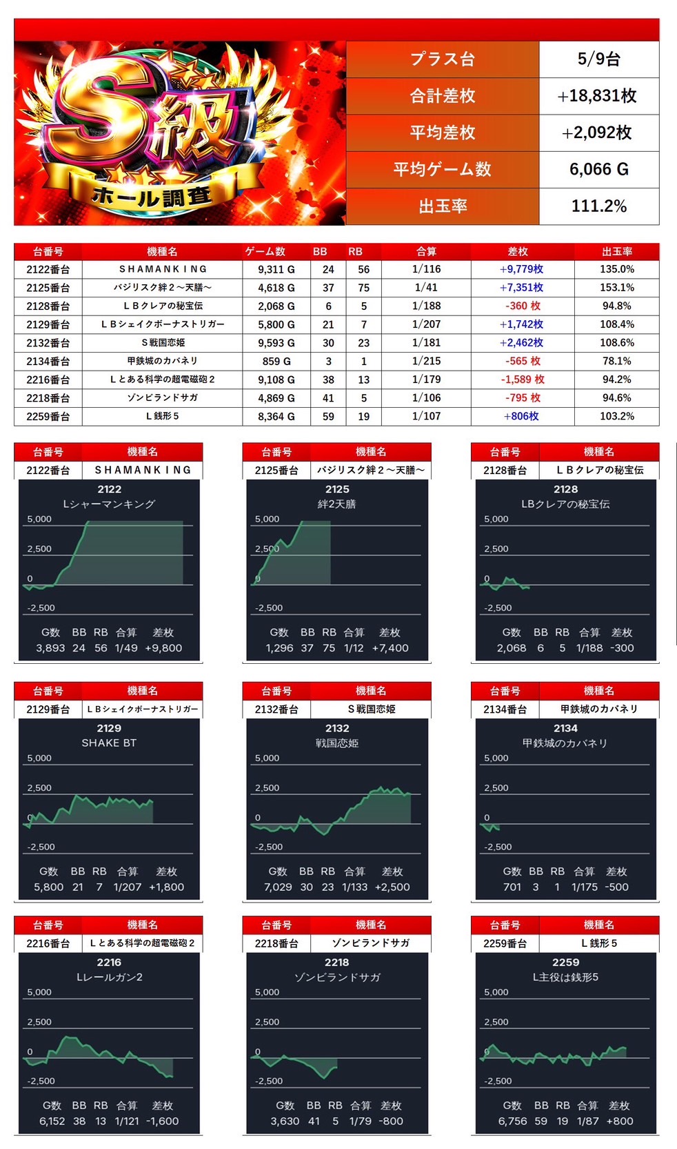 ・1台あたりの平均差枚数+2,142枚(平均出率109.3%)