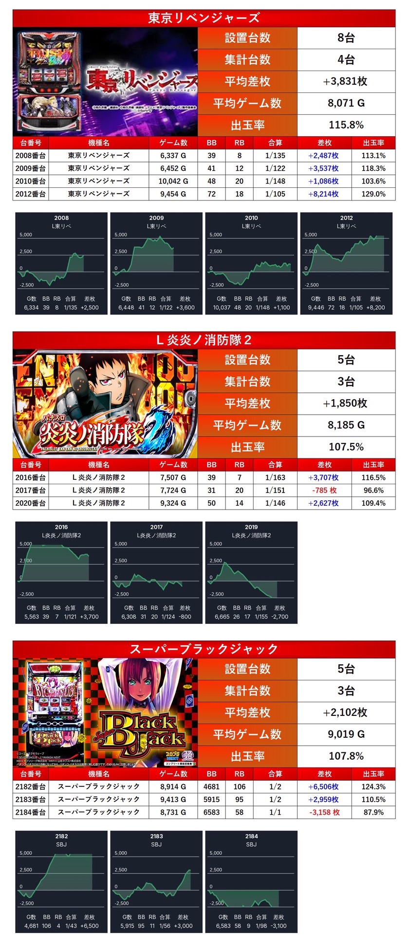 平均差枚+2,074枚、出率108.8%と安定した内容。しっかりと勝率を意識した配分となっており、軸として機能していた。
