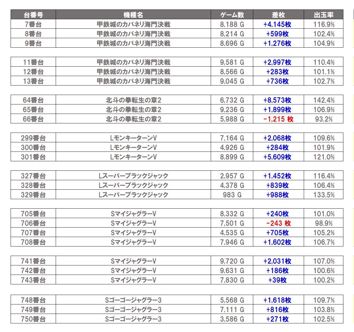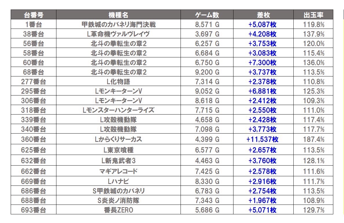 抽選126名 総差枚数+33,319枚