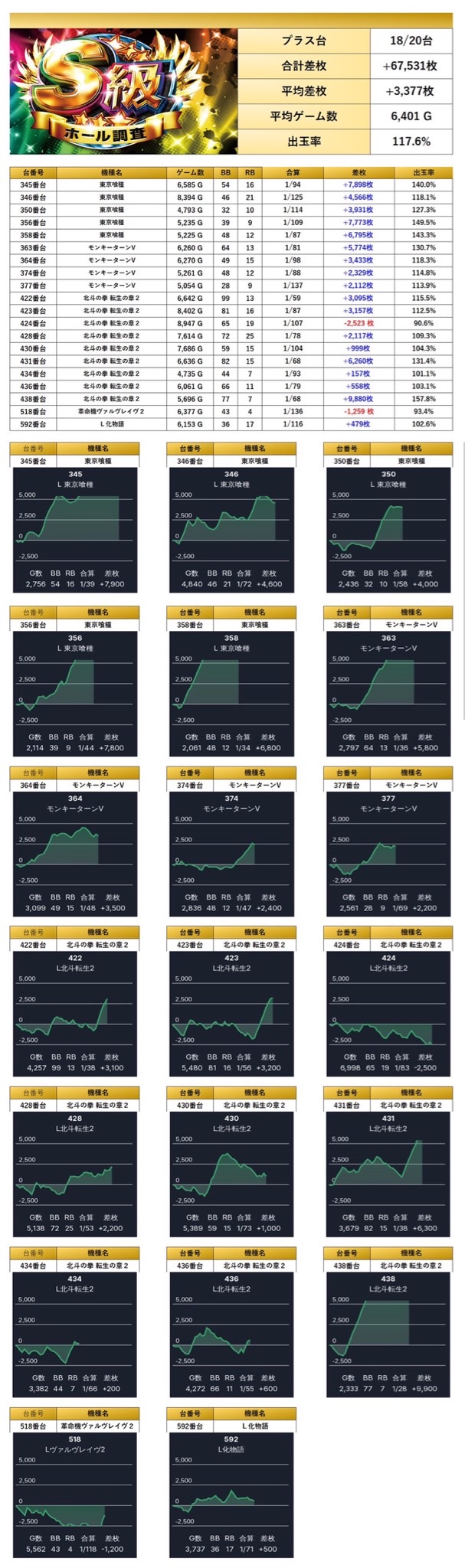 平均差枚+3,377枚、出率117.6%と高水準を記録し、今回の営業の軸としてしっかりと機能していた。