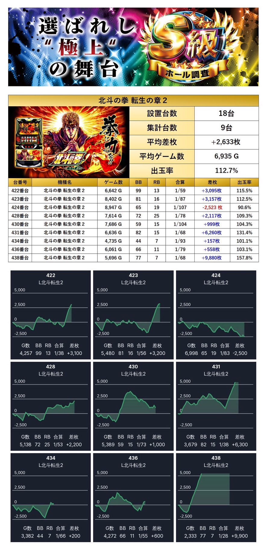平均差枚+2,633枚、出率112.7%としっかりと出玉を伴った結果となった。