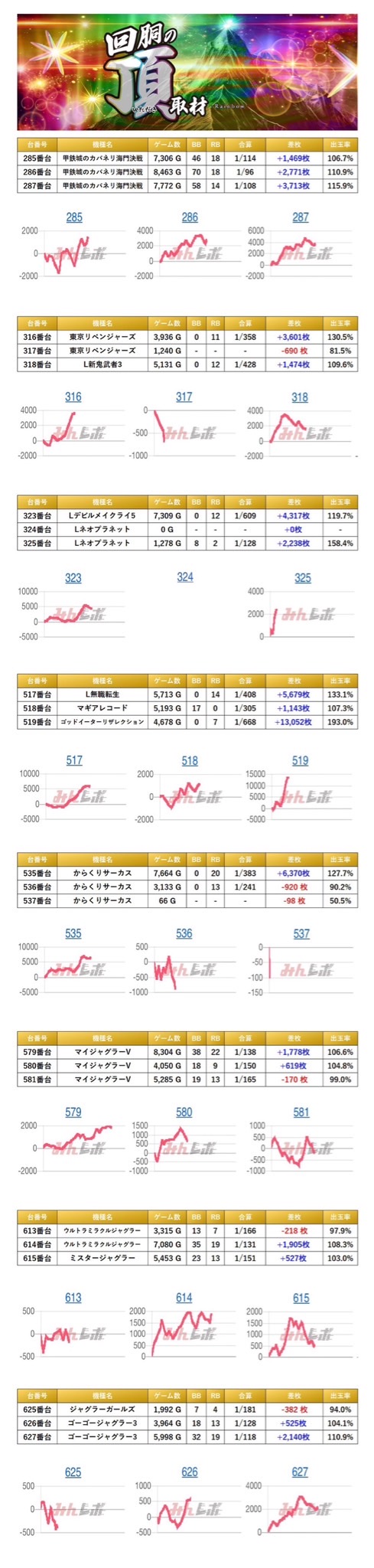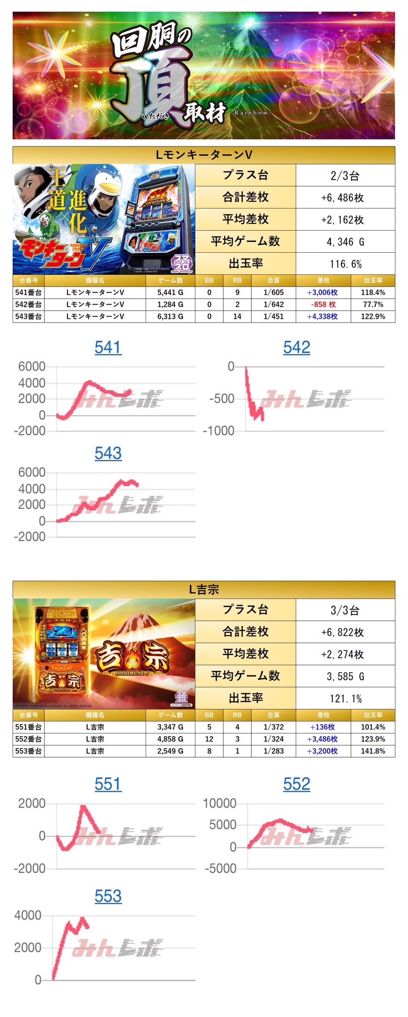 単独開催!回胴の頂取材-虹-は人気機種の並びが優秀な結果!