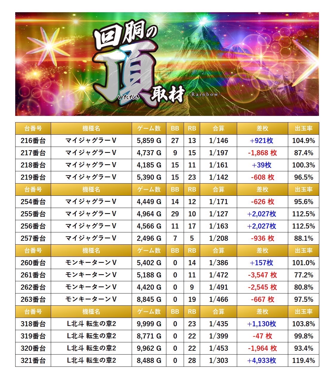 ・集計機種計20台総差枚数:+3,353枚