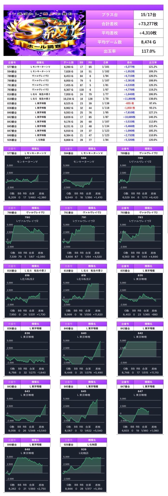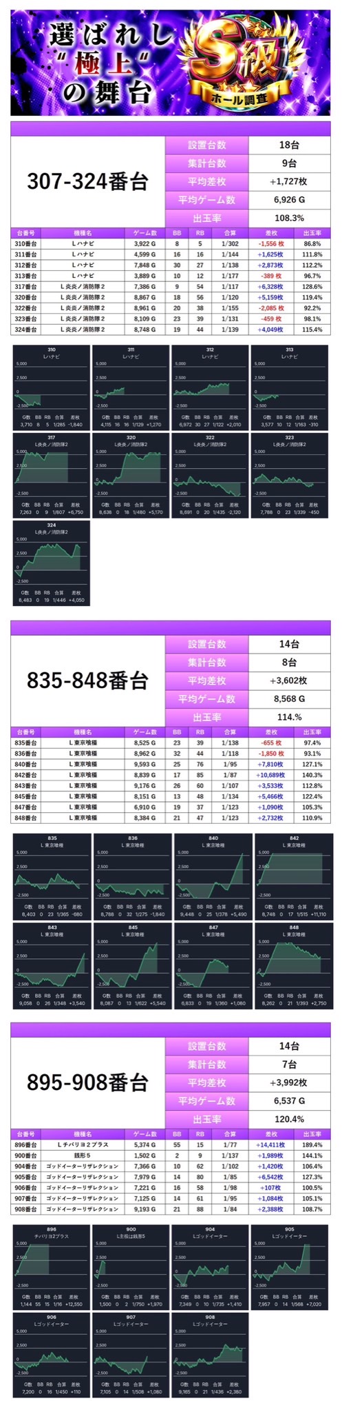 12回目となるS級調査-紫-ではpick up率25.1%という高い仕掛け量に加え、全体差枚でもユーザープラスを達成した非常に完成度の高い内容となった。