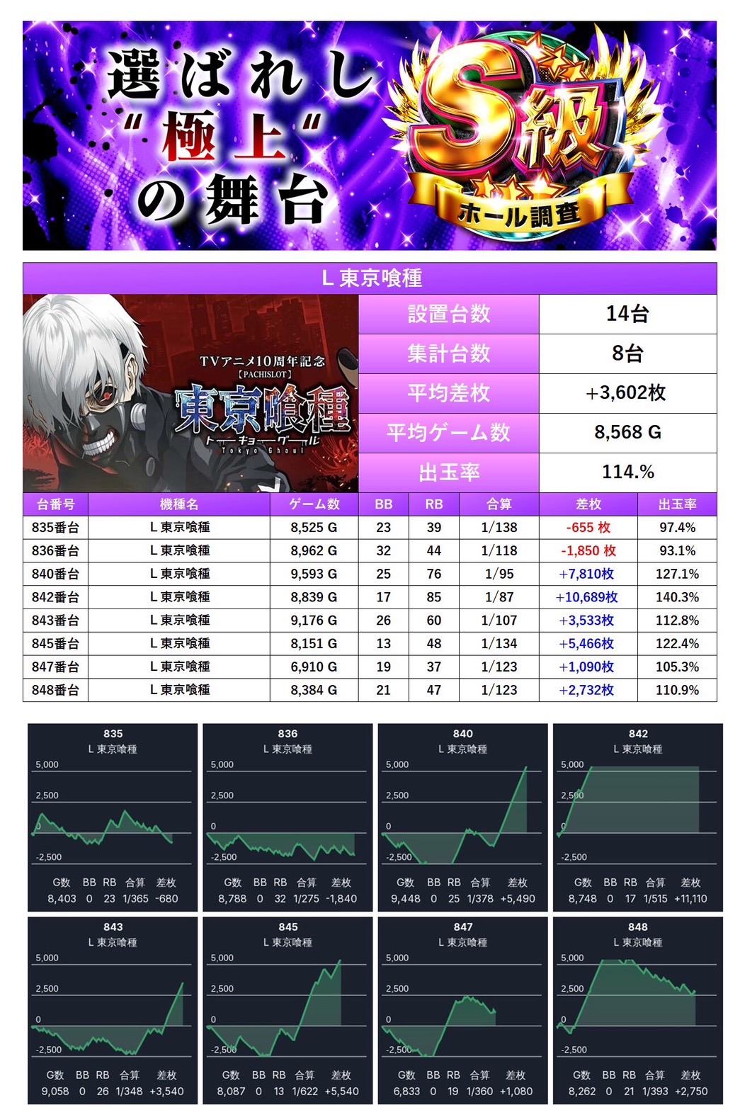 「L東京喰種」「ネオアイムジャグラーEX」の2機種38台がpick up。