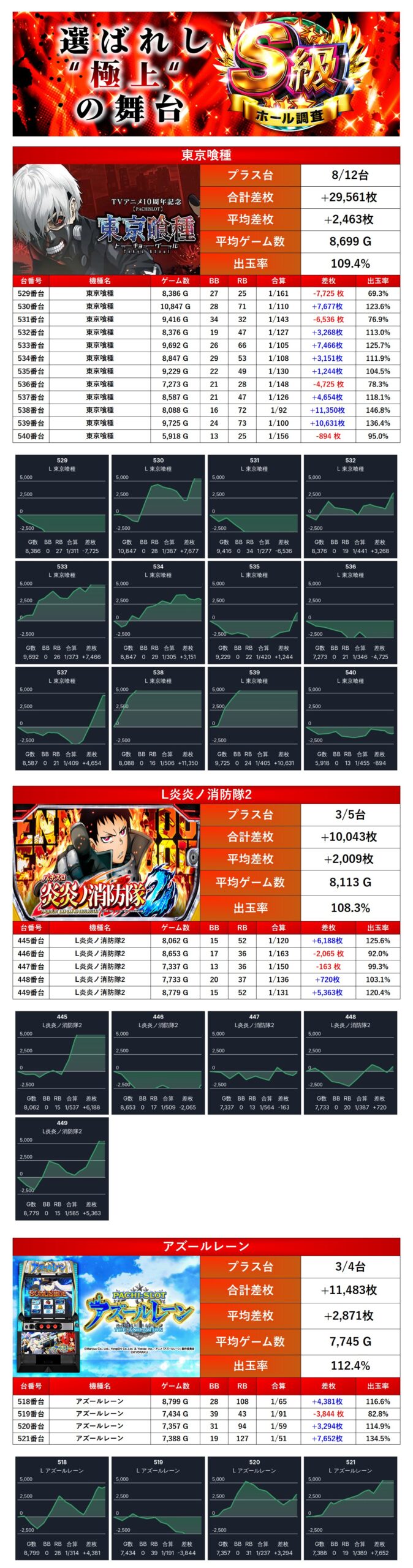 「東京喰種」「L炎炎ノ消防隊2」「アズールレーン」の3機種21台がpick up。