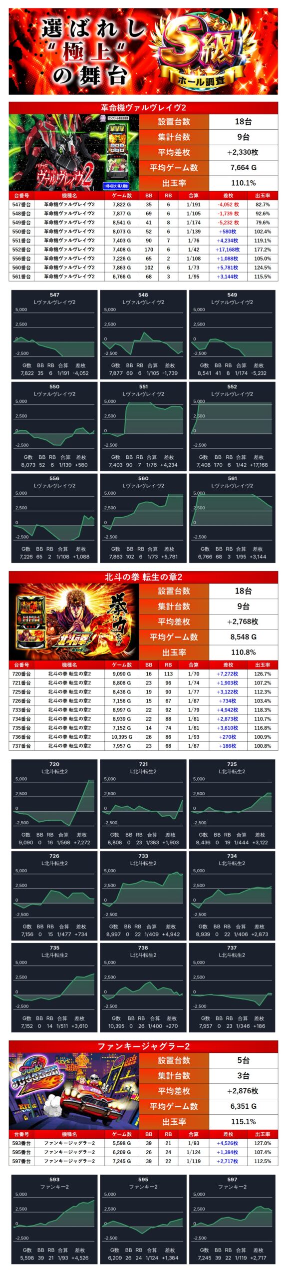 「革命機ヴァルヴレイヴ2」「北斗の拳 転生の章2」「ファンキージャグラー2」の3機種21台がpick up。